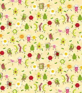 Start Your Day with a Smile with Fabric Traditions Happy Breakfast on Yellow Novelty Cotton Fabric