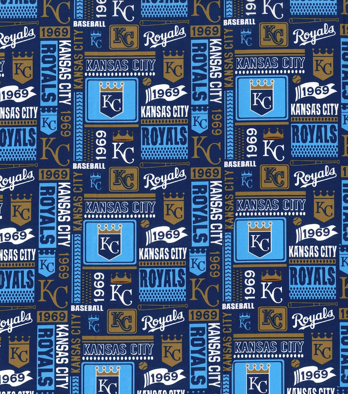 • Fabric Traditions Kansas City Royals MLB Block Print Cotton Fabric