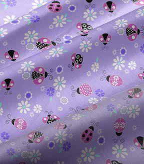 Get Creative with Adorable Ladybugs and Daisies on Purple Cotton Fabric