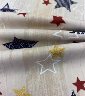 Fabric Traditions Multi Stars On Glitter Wood Grain Patriotic Cotton Fabric