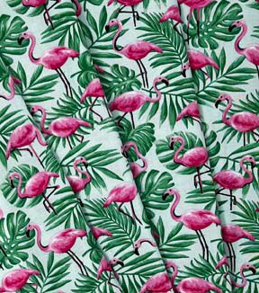 Bring a Touch of the Tropics to Your Next Project with Fabric Traditions Pink Flamingos In Palm Leaves Novelty Cotton Fabric