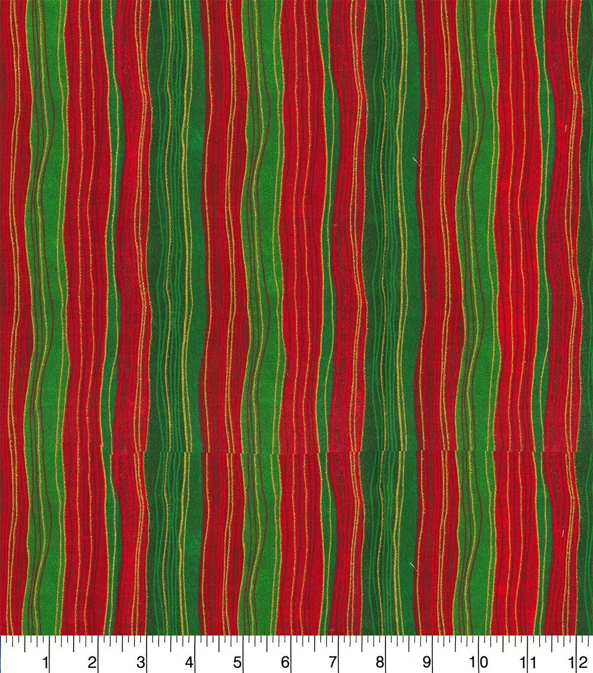 Get into the Holiday Spirit with Fabric Traditions Red & Green Wavy Striped Christmas Cotton Fabric