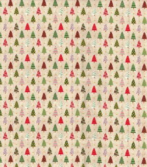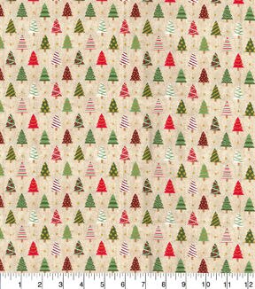 Fabric Traditions Trees on Cream Christmas Cotton Fabric