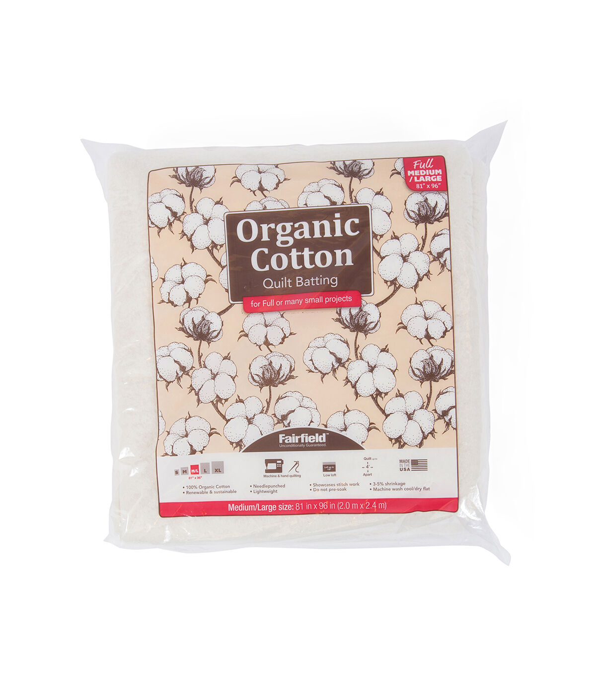 Organic Cotton 100% natural needlepunched cotton batting is perfect for all of your quilts and crafts. This batting is extra clean to eliminate seeds, stems and leaves.