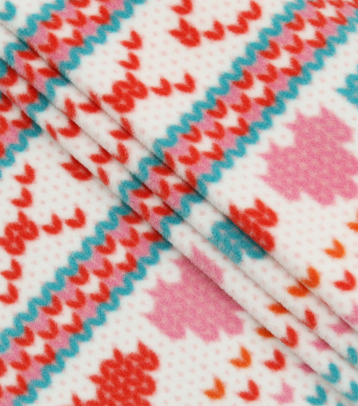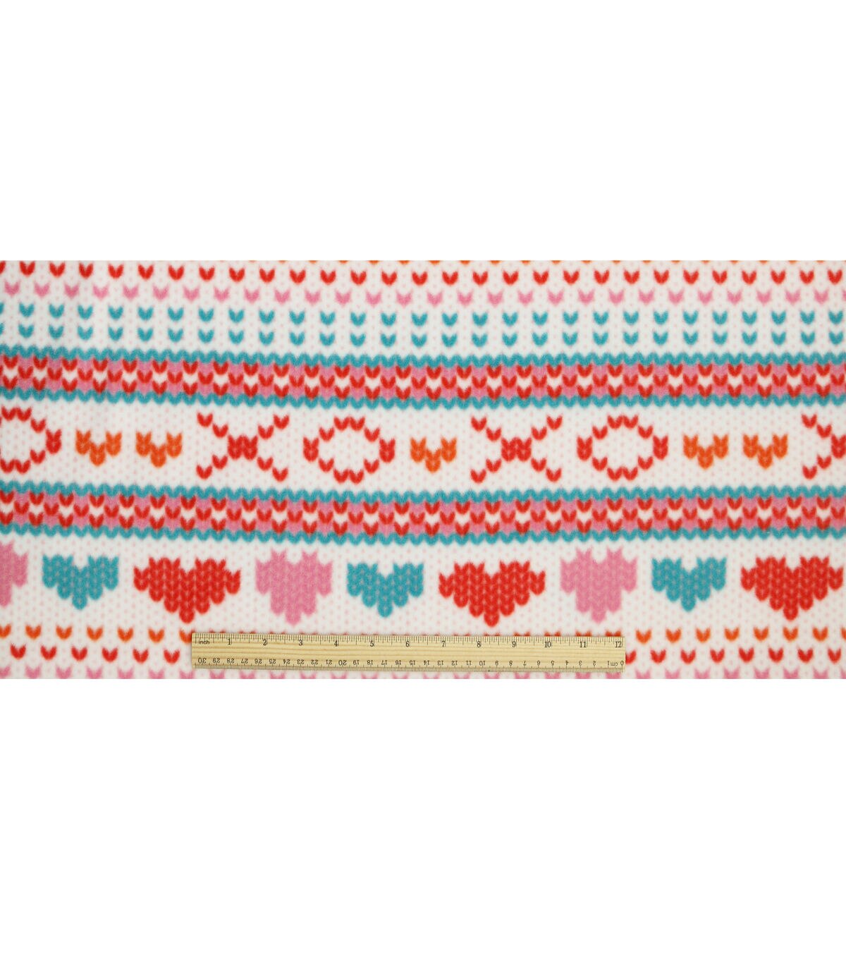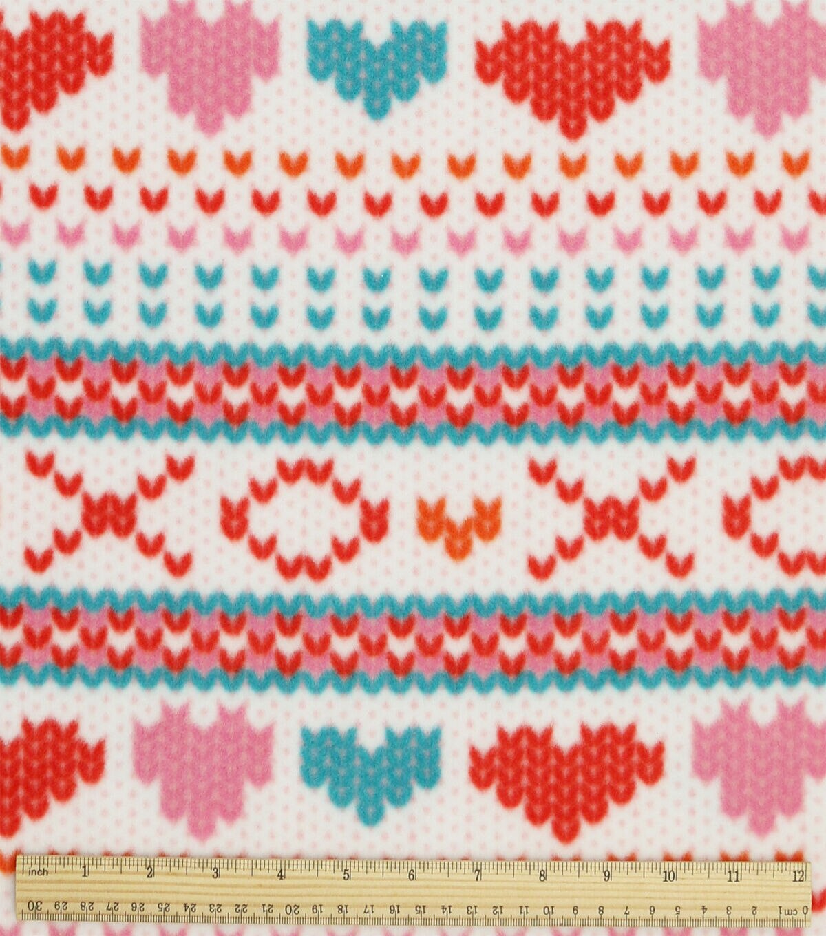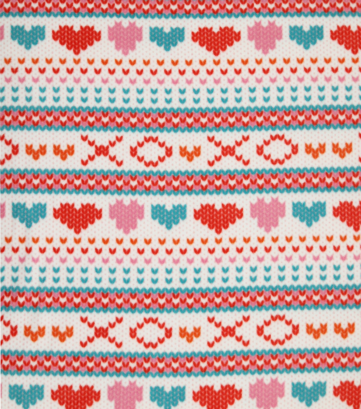 Stay Cozy with Fairisle Hearts on White Anti Pill Plush Fleece Fabric by POP!