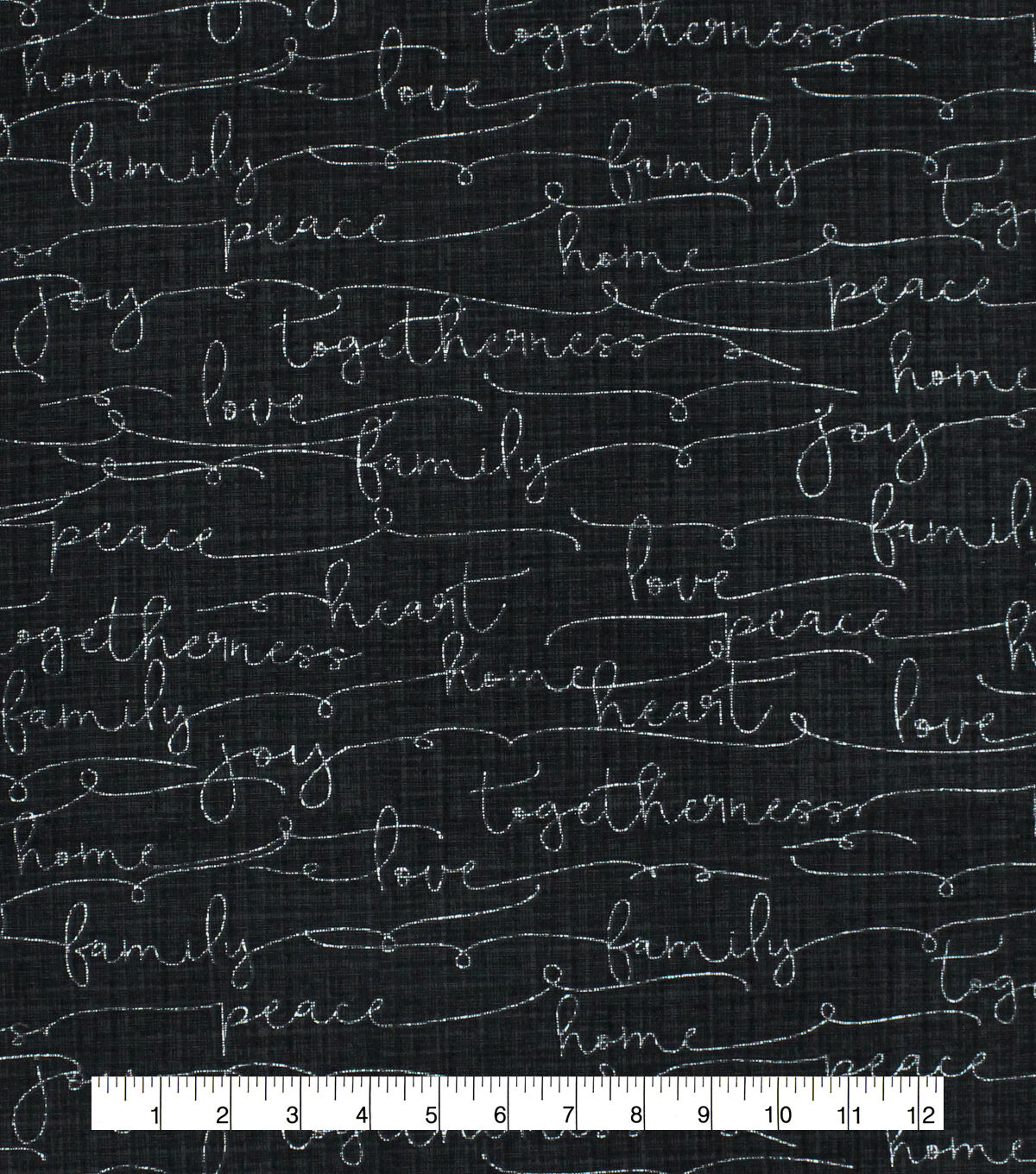 • Family Words On Black Cotton Canvas Home Decor Fabric