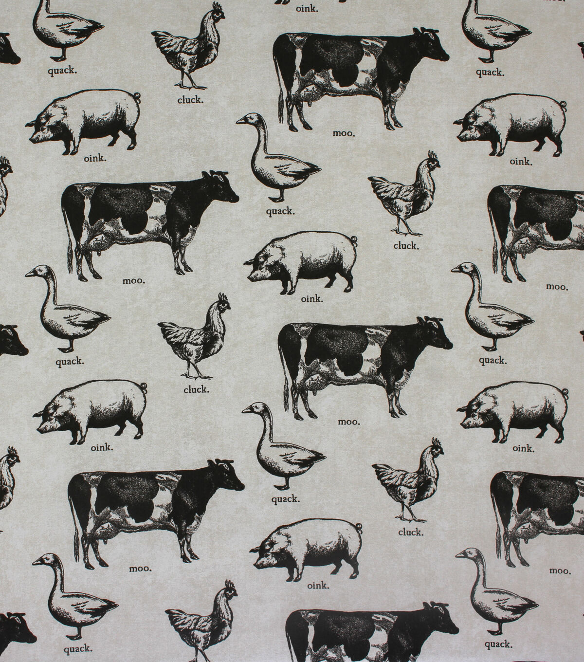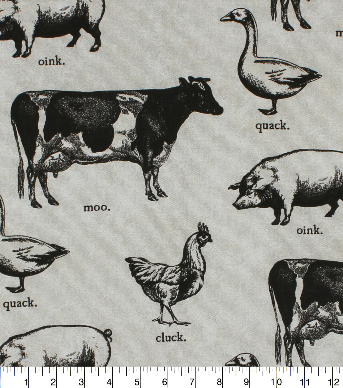 100% Cotton Canvas Print Toile etching of farm animals in classic black and white.