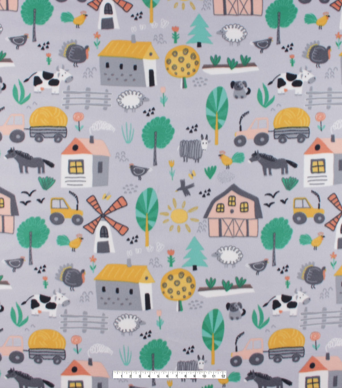• Farm On Gray Blizzard Fleece Fabric