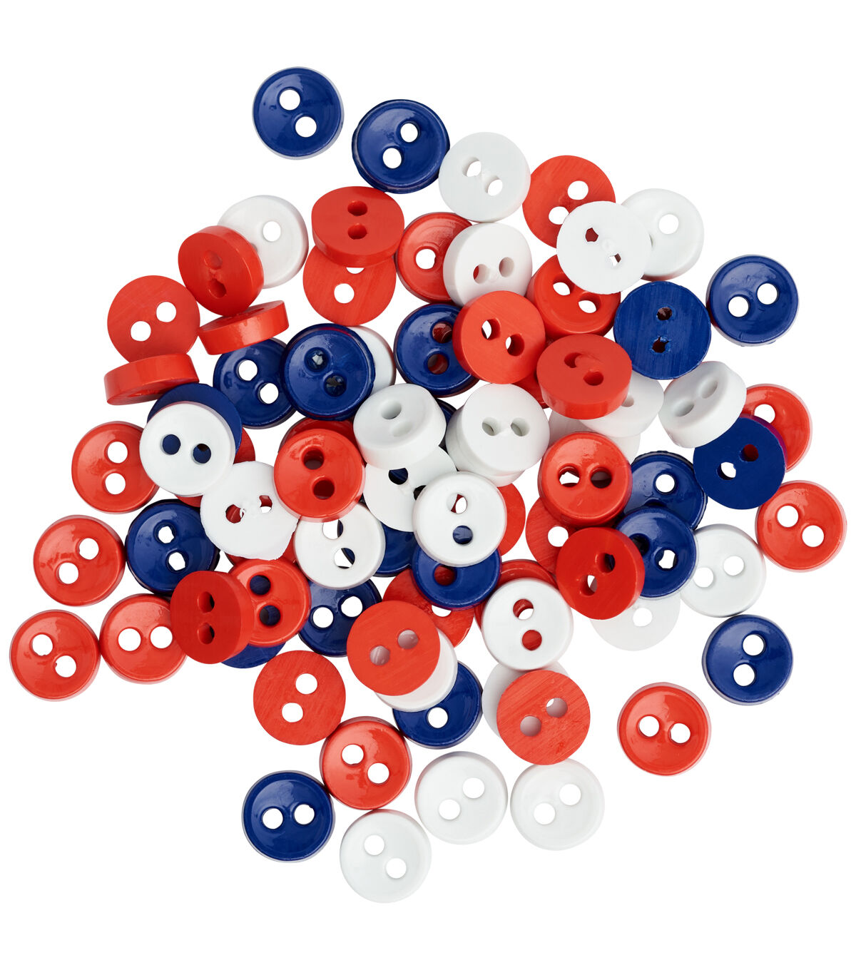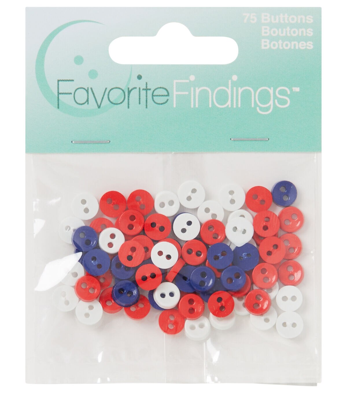 Lend a patriotic touch to your handmade apparel with the Favorite Findings Mini 2 Hole Buttons - Red, White & Blue. They sport red, white and blue shades. You can add them to tops, blouses, skirts and more. These buttons will also be perfect to decorate headbands and tote bags. This pack comes with 75 buttons.