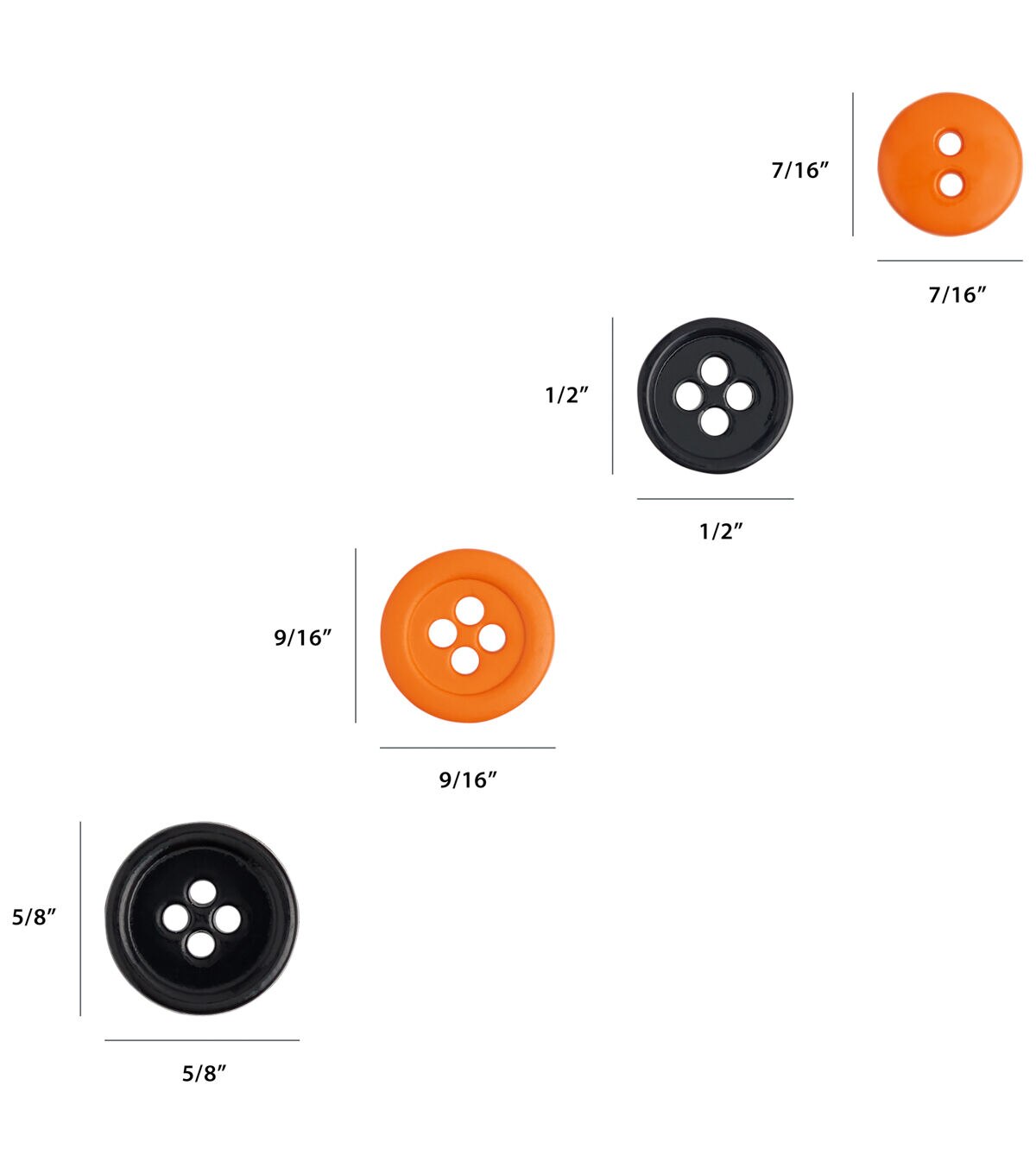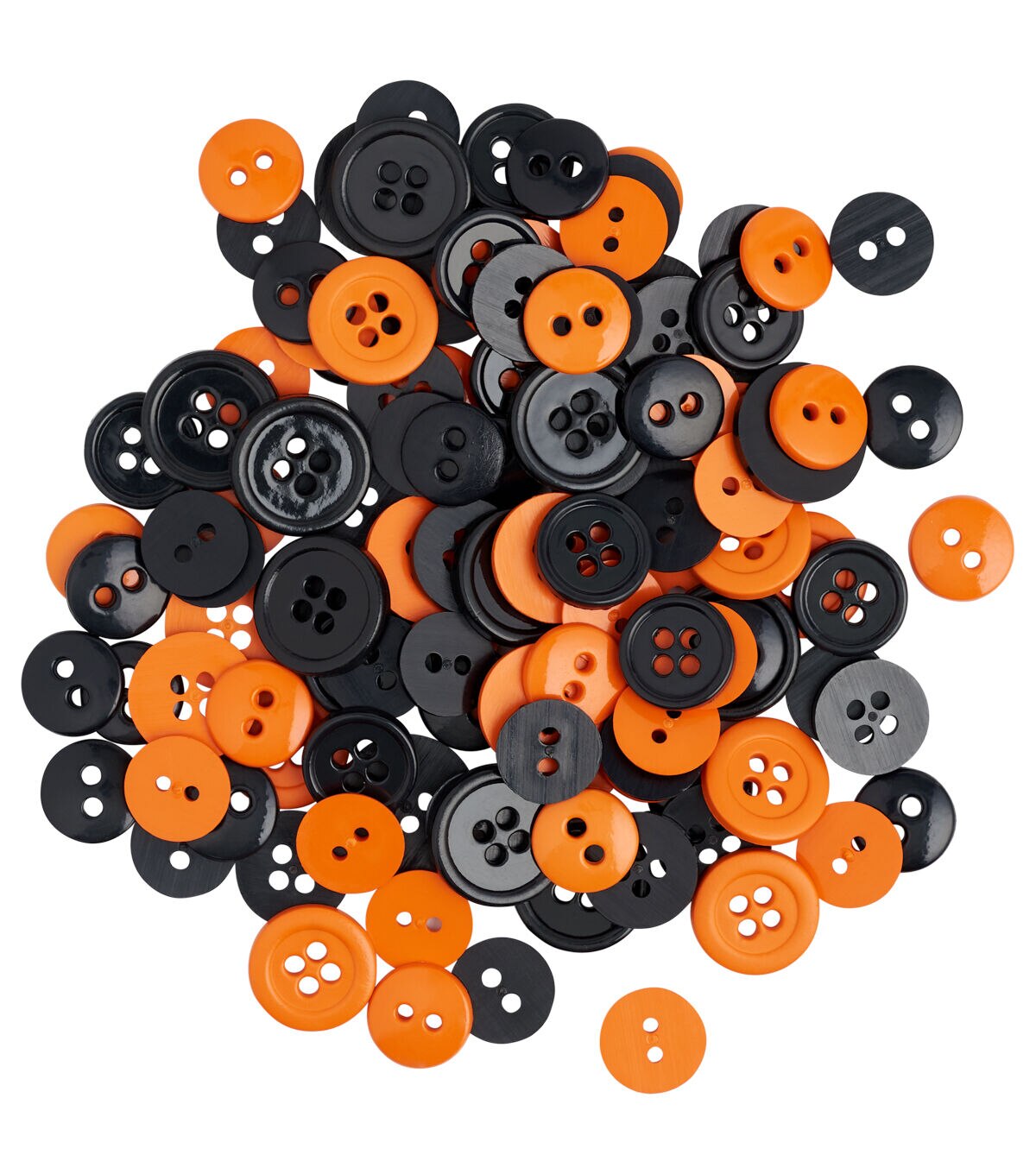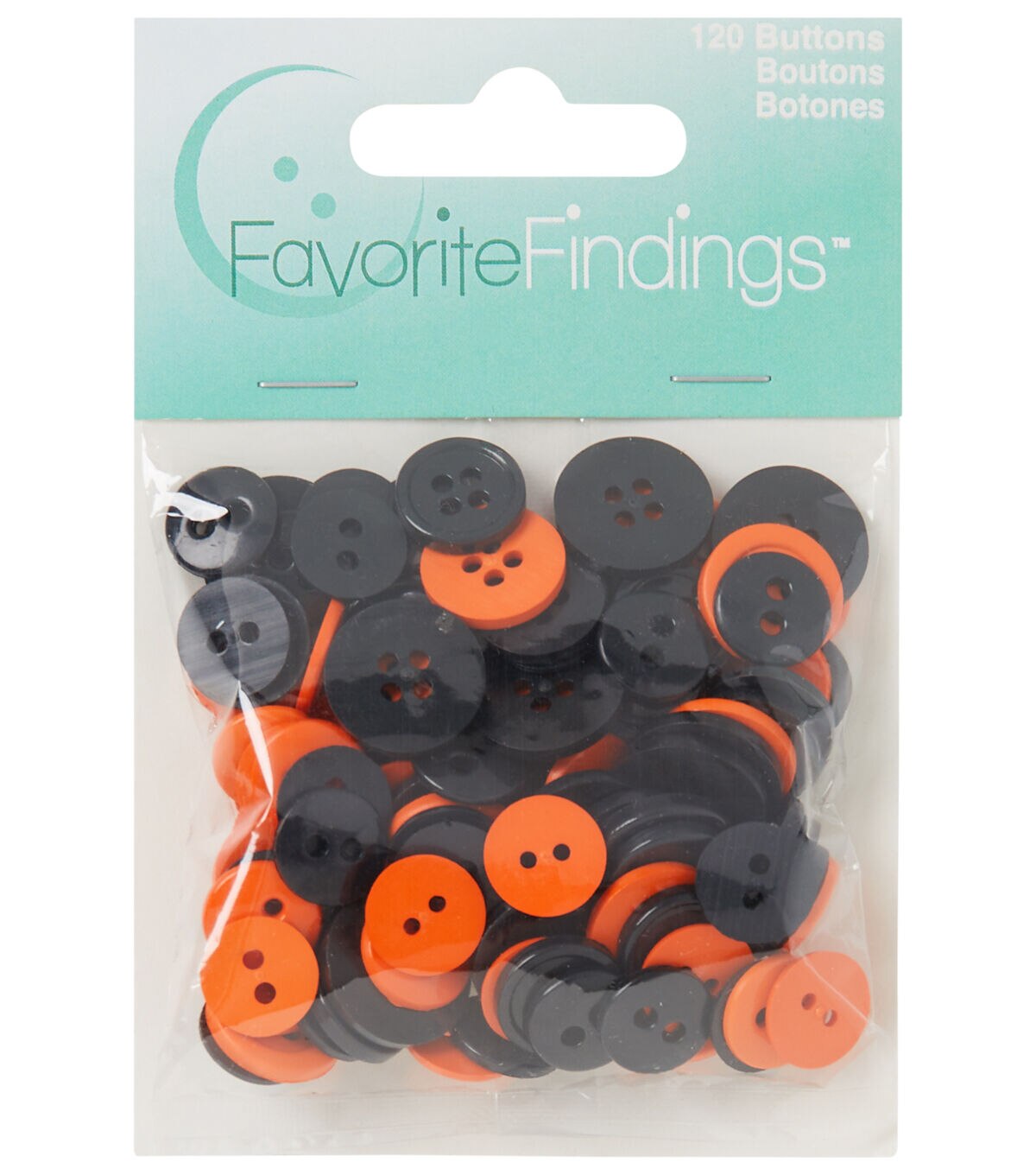 The Favorite Findings Halloween Buttons - Black & Orange will make the perfect choice for your apparel and sewing projects for Halloween. Sporting orange or black shades, these two-holed buttons will make a unique addition to DIY dresses, tops or tees. You can also use them to decorate handmade fabric tote bags.