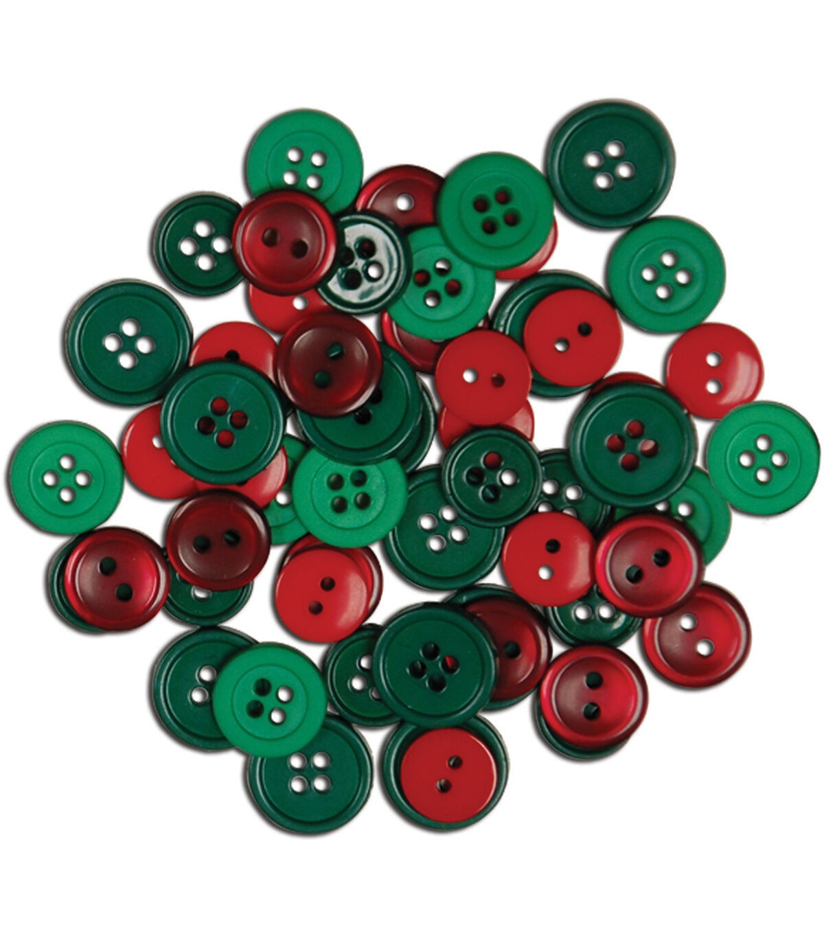 Add colors to your Christmas-themed papercrafting and fabric projects with the Favorite Findings Holiday Buttons Red & Green. This pack contains 130 buttons that come in a variety of sizes and flaunt shades of red and green. You can easily attach these buttons to your handmade creations using glue, tape, thread, ribbon and more. Brand: Favorite Findings Collection: Apparel Buttons,Seasonal Buttons,Solid & Bulk Buttons Includes 130 buttons