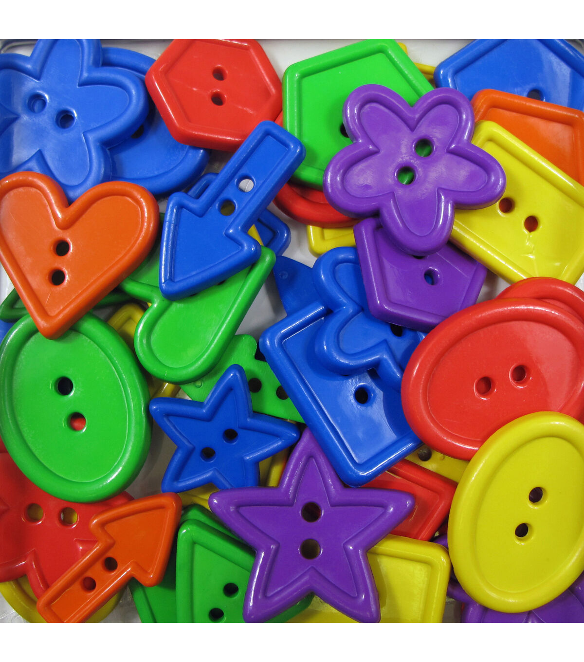Add an appealing touch to your home decor, papercrafting and apparel projects with the Favorite Findings Assorted 2 Hole Buttons. This value pack includes buttons in a variety of shapes and lovely contrasting hues. These buttons will allow you to make several sewing or craft projects. You can use the buttons sporting primary colors for back-to-school projects.