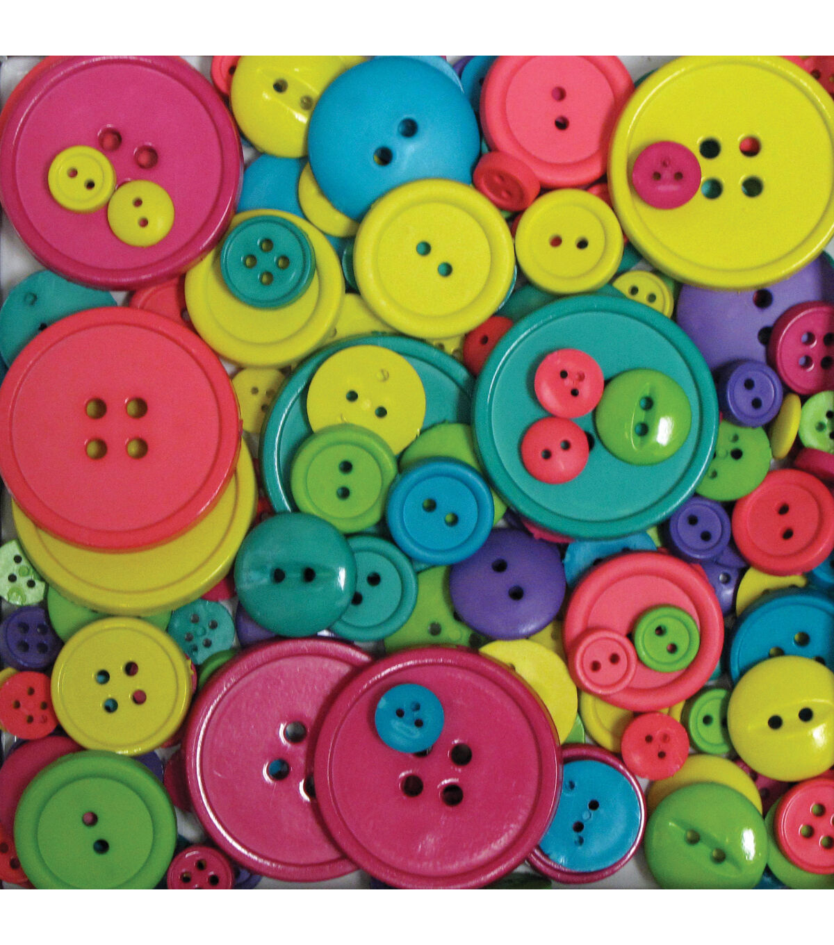 This value pack of round buttons will allow you to make several sewing or craft projects. The sizes and colors vary. The bright colors are perfect for any craft project.