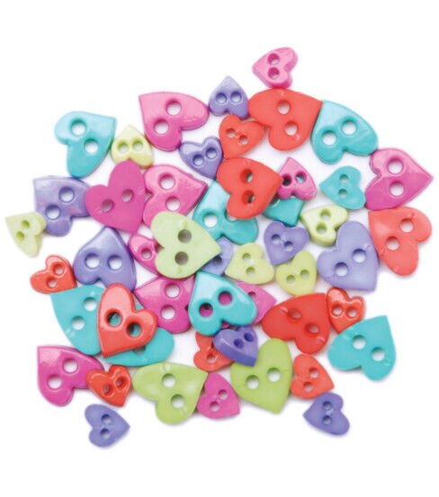 The Favorite Findings Mini Shaped Buttons-Colorful Hearts will be perfect to accessorize a range of creative projects. These heart-shaped plastic buttons flaunt different colors. Use them as is or mix and match them with other shapes to create button art and other craft projects. You can also use these buttons to accentuate cushion covers, wall decor accents, apparel, tote bags and much more.