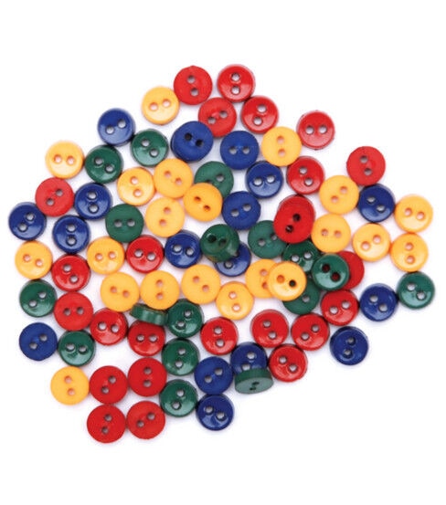 7mm mini plastic buttons for all of you sewing and crafting needs. This package contains seventy-five buttons in assorted colors. Available in a variety of color combinations: each sold separately. Imported.