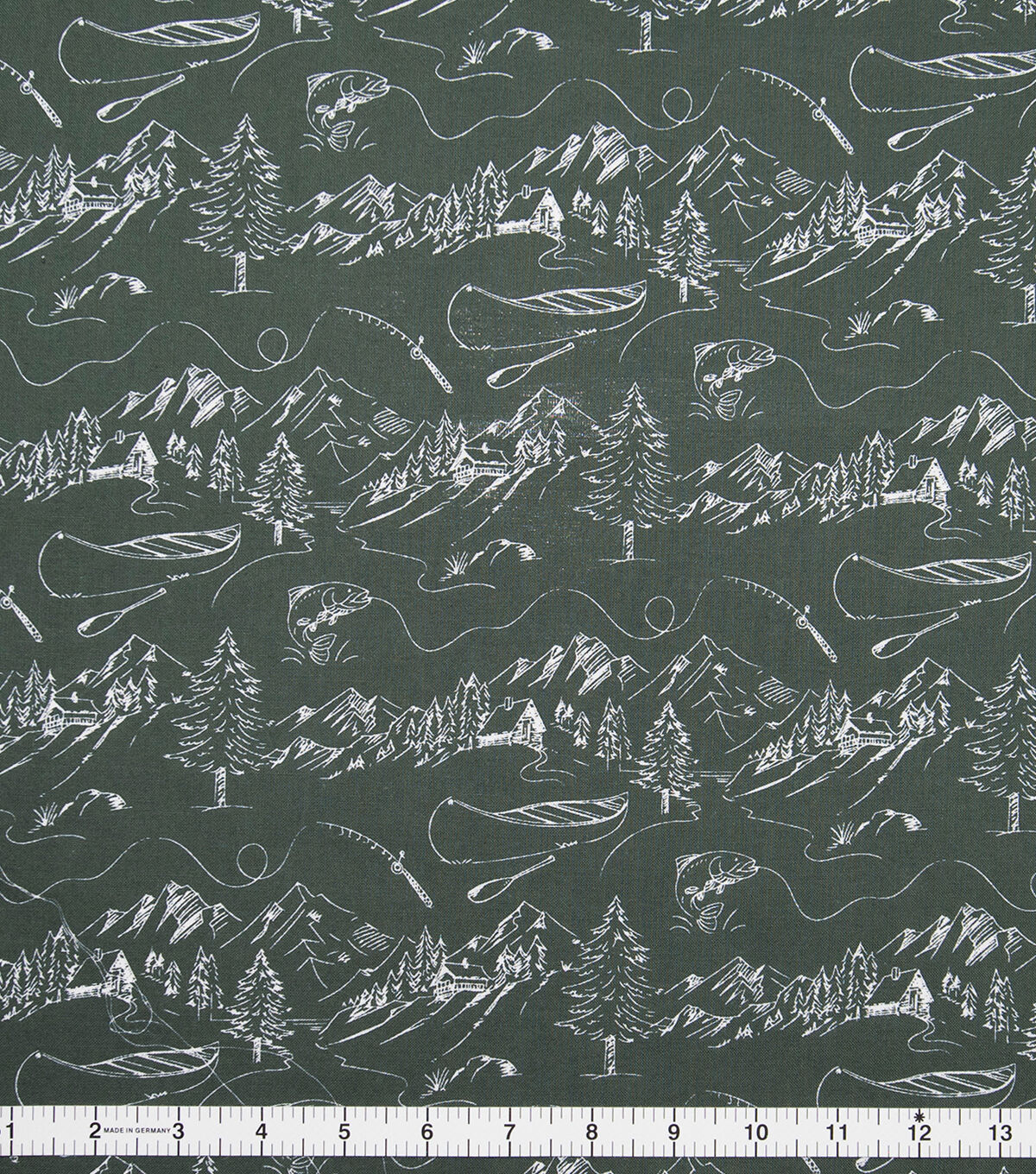 Fish And Pines On Green Novelty Prints Cotton Fabric