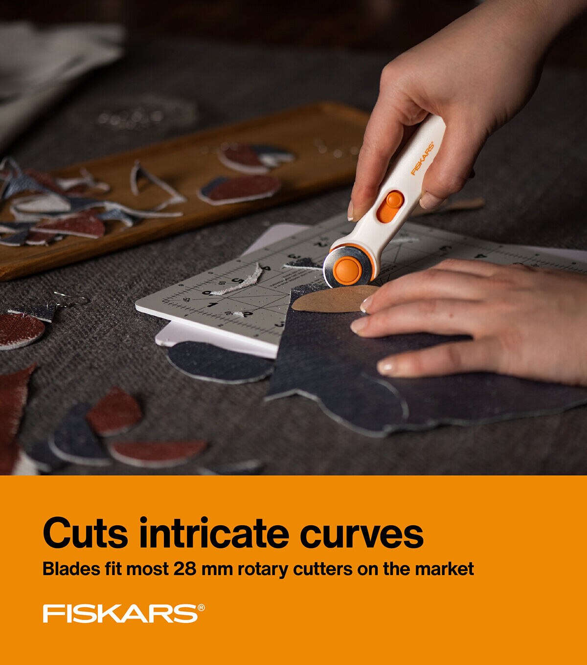 Perfect for cutting curves and patterns on light- to medium-weight materials, these rotary straight replacement blades fit most 28 mm rotary cutters on the market today.