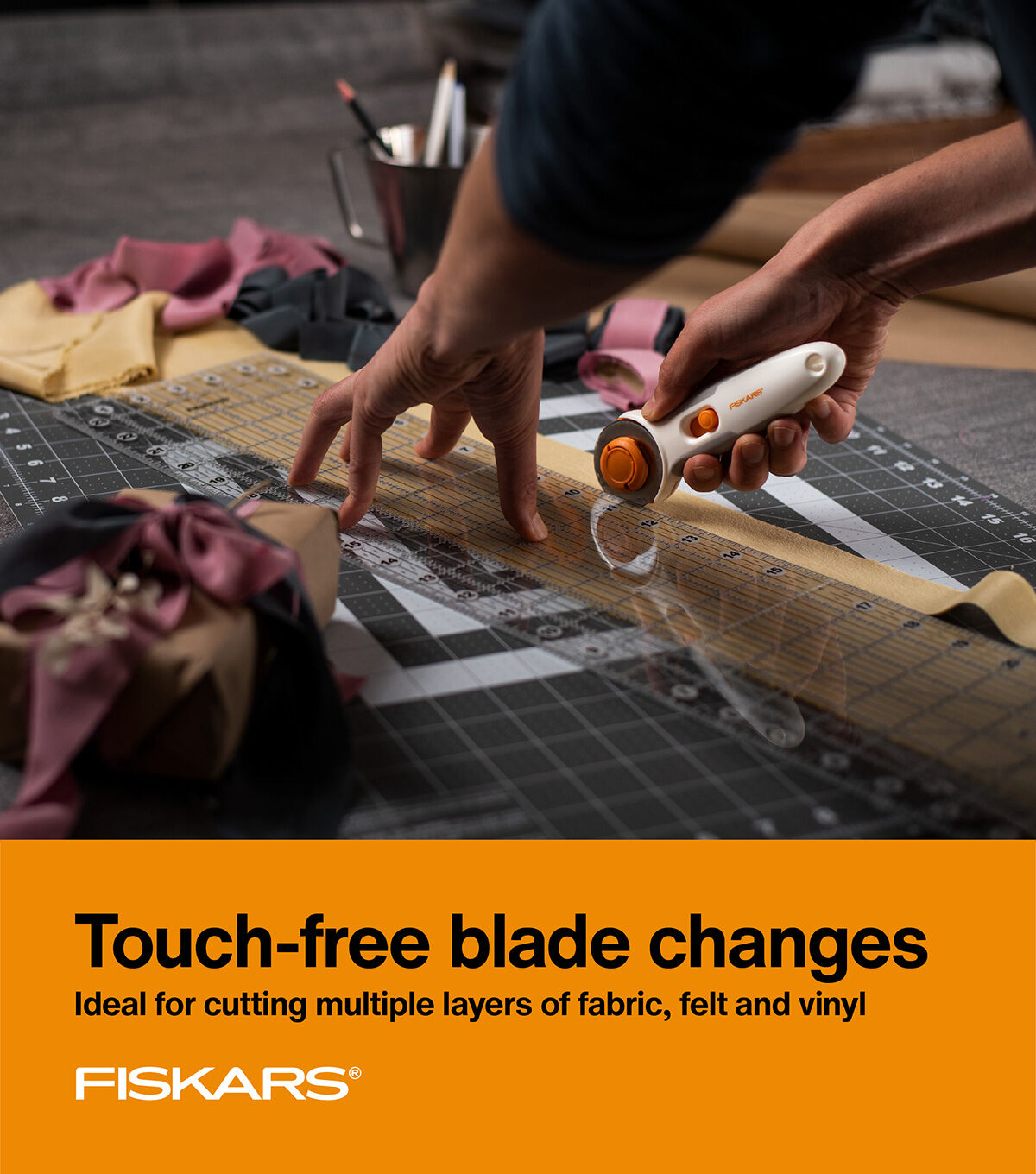 - Fiskars Easy Change Titanium Stick Rotary Cutter (45 mm) features a magnetic blade hub system for safer, easier and quicker blade replacement