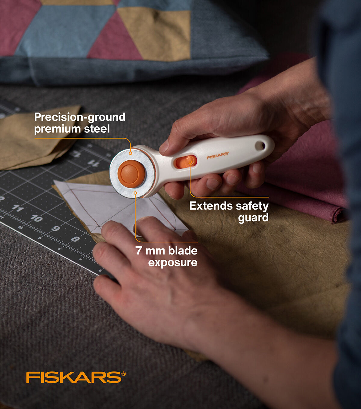 - Fiskars Stick Rotary Cutter (45 mm) is ideal for cutting multiple layers of fabric, felt and vinyl