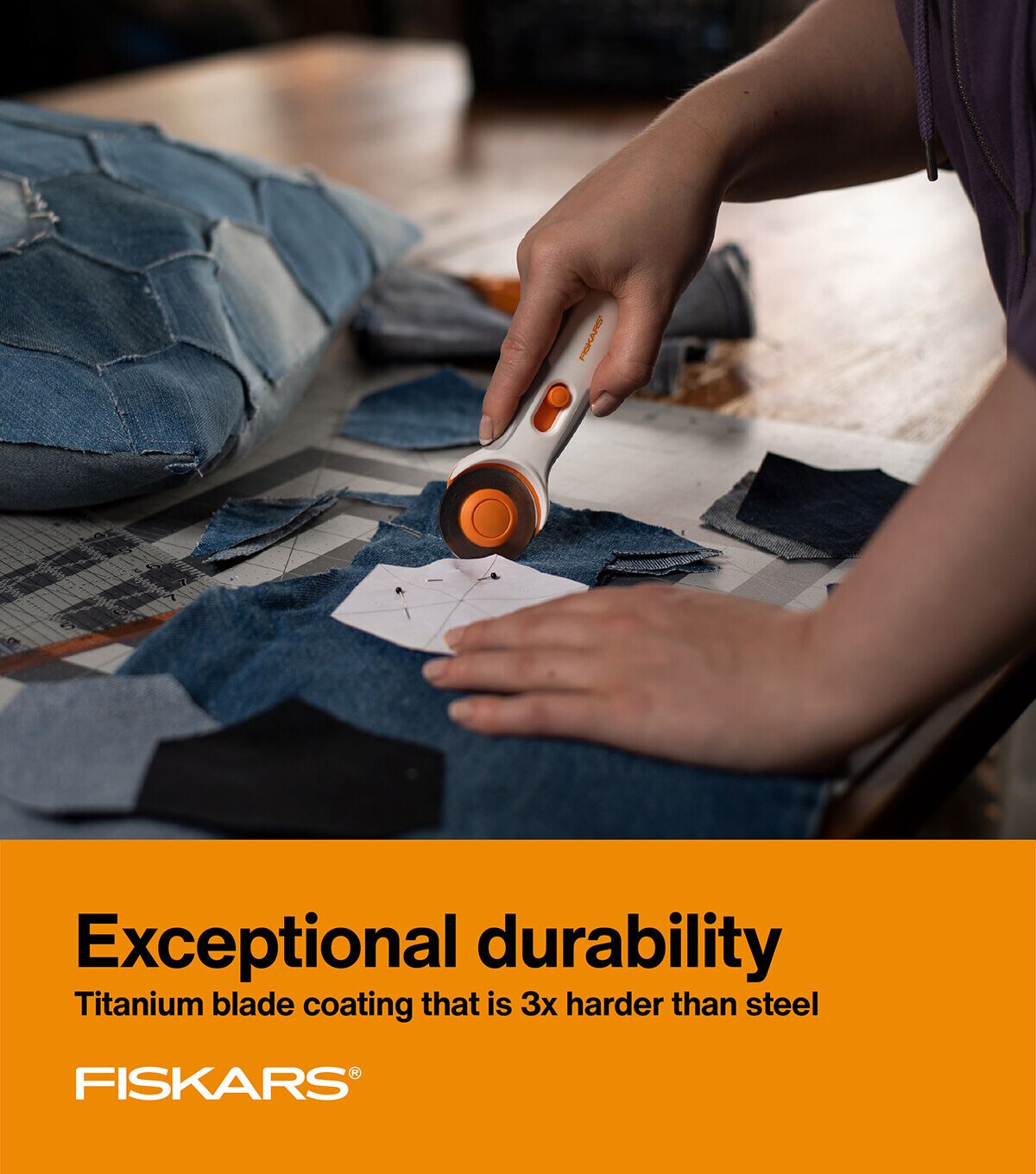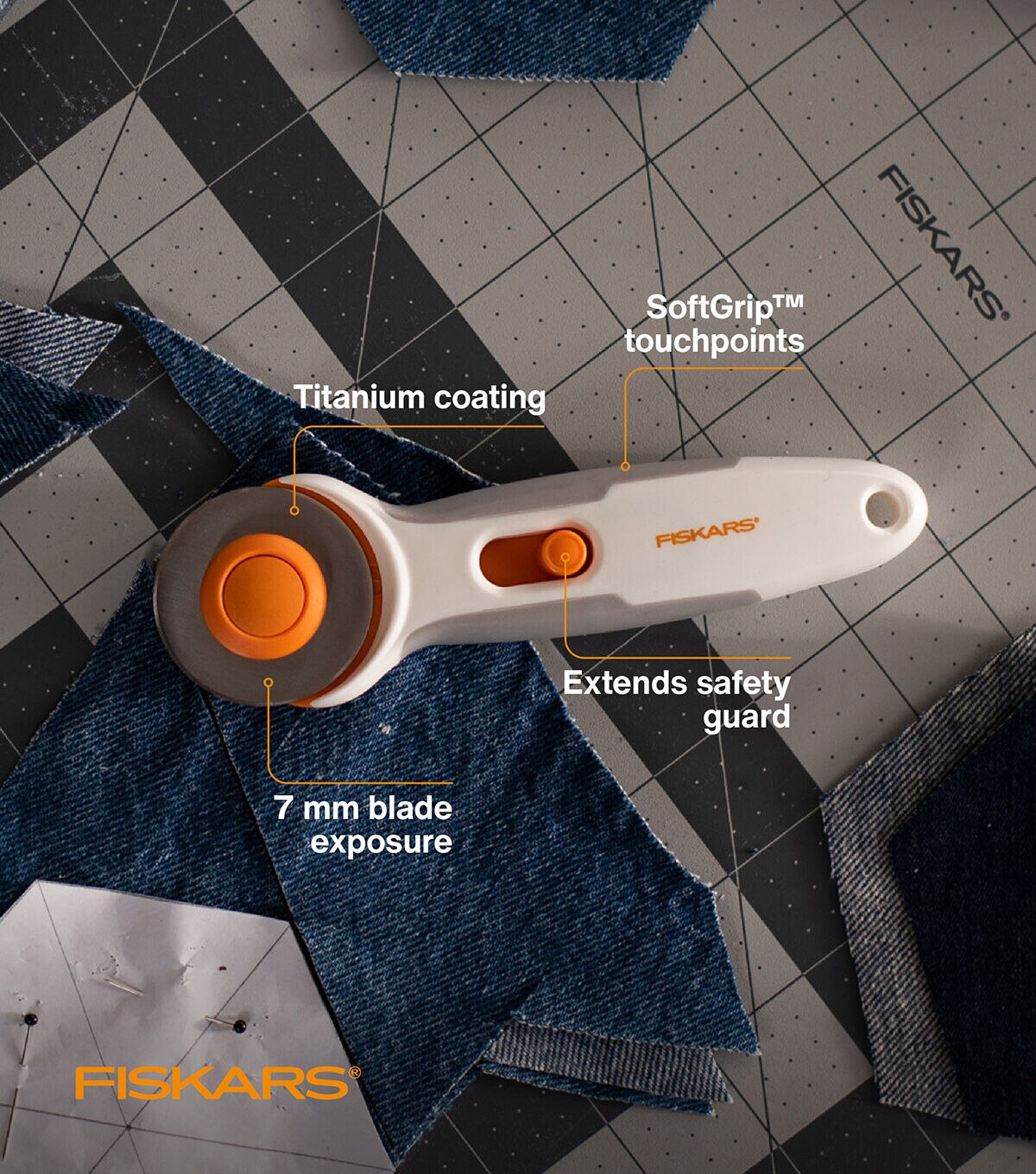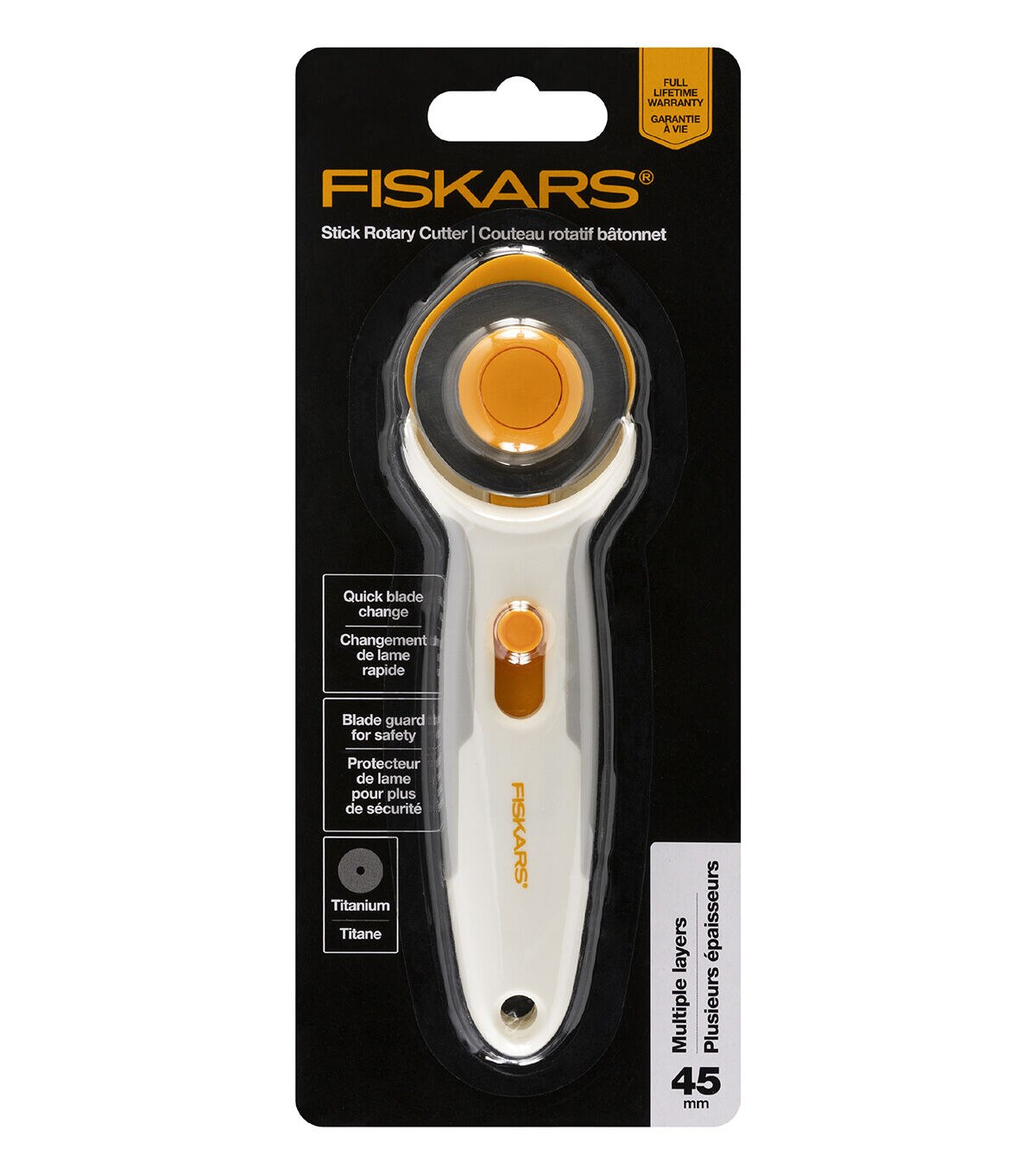 - Fiskars Titanium Stick Rotary Cutter (45 mm) is ideal for cutting multiple layers of fabric, felt and vinyl