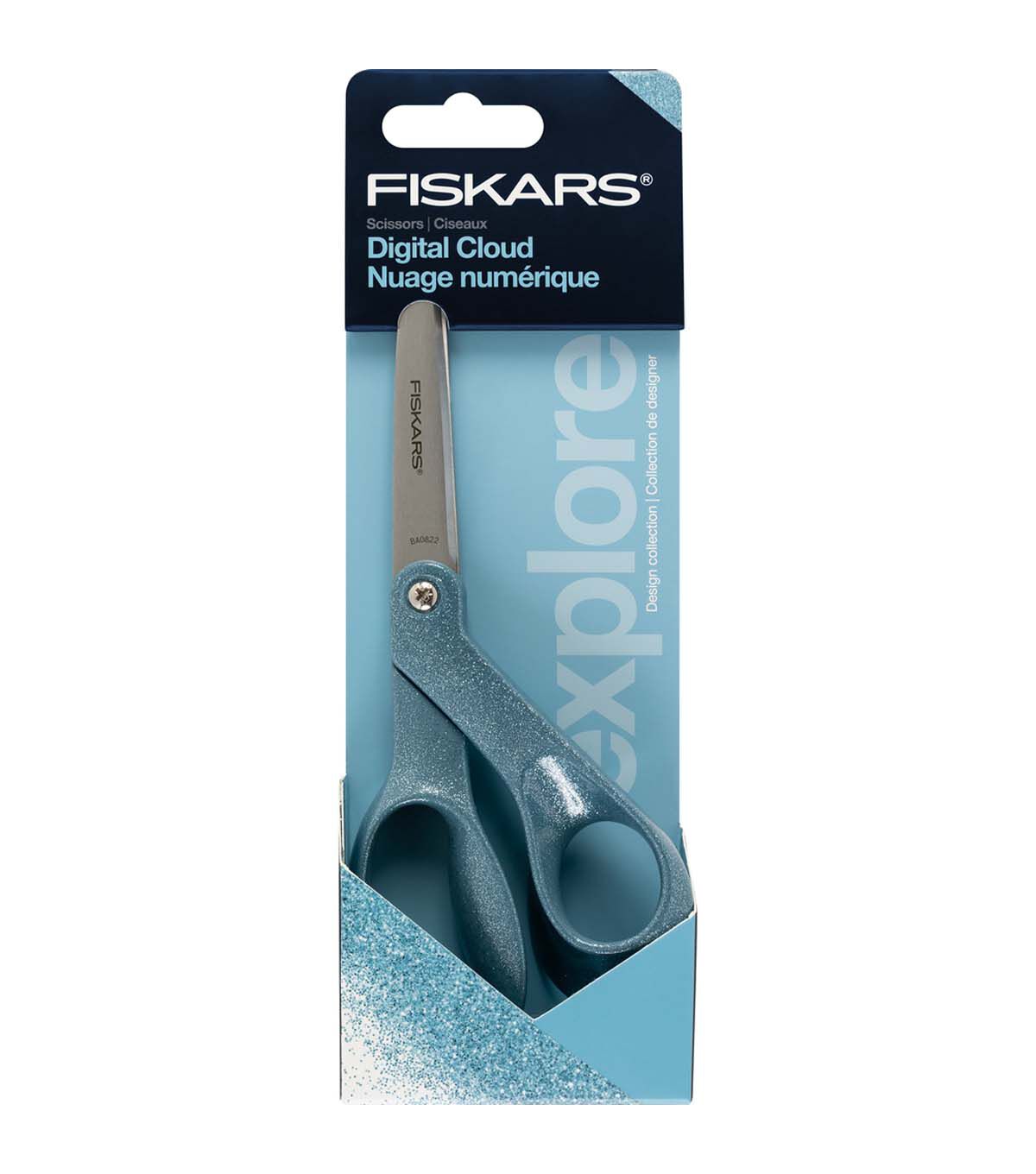 Fiskars Explore collection pays tribute to exploring natural and digital worlds, and Fiskars® Digital Cloud Glitter Scissors offer premium performance and ergonomic comfort unique to Fiskars scissors. Their high-grade stainless steel blades have a precision-ground edge that stays sharp and cuts all the way to the tip, ideal for working with a wide variety of crafting materials.