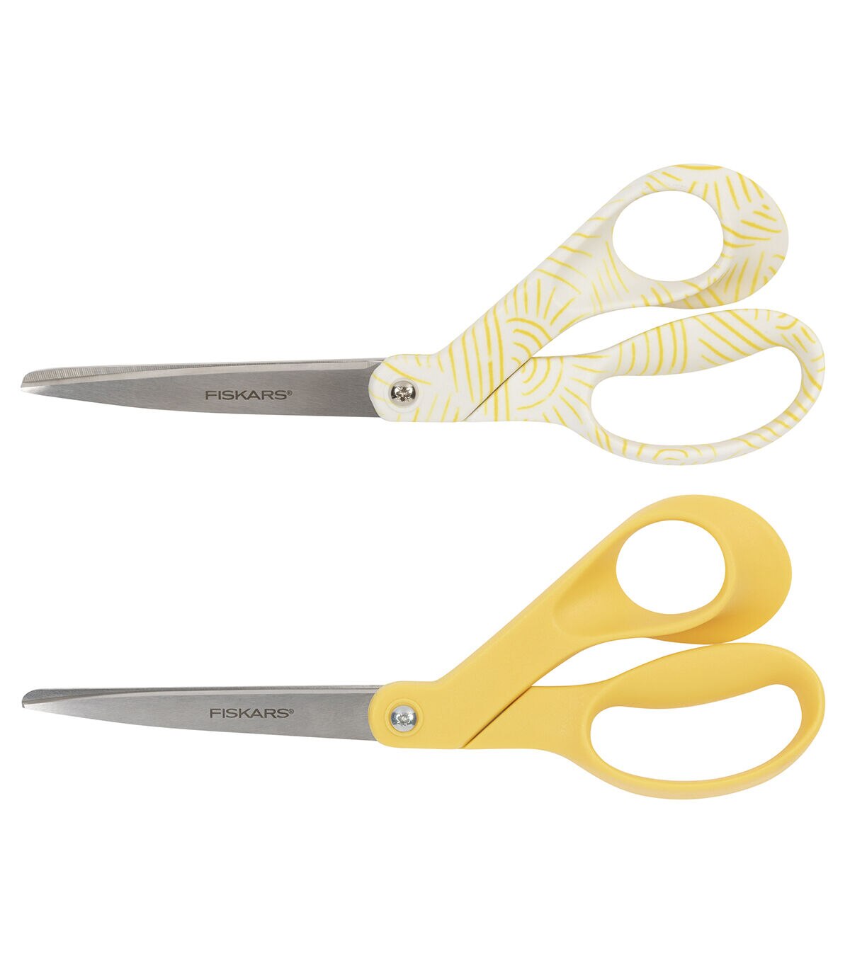 Enjoy legendary performance and a designer take on The Original Orange-handled Scissors with Fiskars Limited Edition Scissors Set. Every sewer and quilter is looking for premium performance from their scissors, even if orange isn’t their preferred color. That’s why Fiskars has created scissors that incorporate all the essential features of The Original Orange-Handled Scissors with handles in exciting patterns and colors. High-grade stainless steel blades feature a precision-ground edge that stays sharp longer and cuts all the way to the tip, an essential feature for anyone who cuts fabric. A lightweight design and ergonomically sculpted handle provide unmatched cutting control, and a bent handle design keeps materials flat for precise cuts every time.
