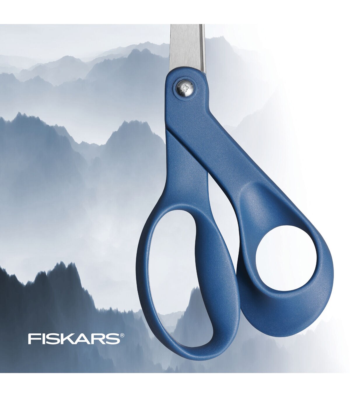 Exploration is a powerful source of inspiration, and Fiskars Explore collection pays tribute to exploring natural and digital worlds with striking style. Fiskars® Mountain Haze Scissors feature premium performance and ergonomic comfort unique to Fiskars scissors. Their high-grade stainless steel blades have a precision-ground edge that stays sharp and cuts all the way to the tip, ideal for working with a wide variety of crafting materials. The trend-forward handle is sculpted to fit your hand for exceptional comfort and control. This scissors' bent handle design allows you to keep materials flat for precise cuts every time.