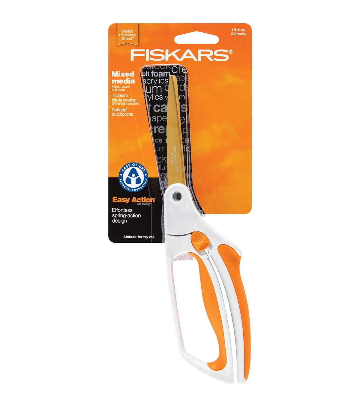 - Fiskars Titanium Easy Action Scissors offers a spring-action design that makes it easy to use for people with arthritis or limited hand strength