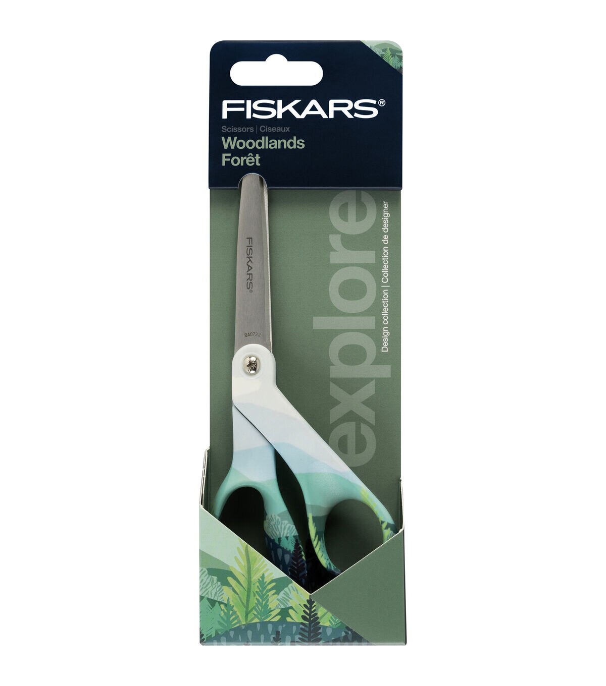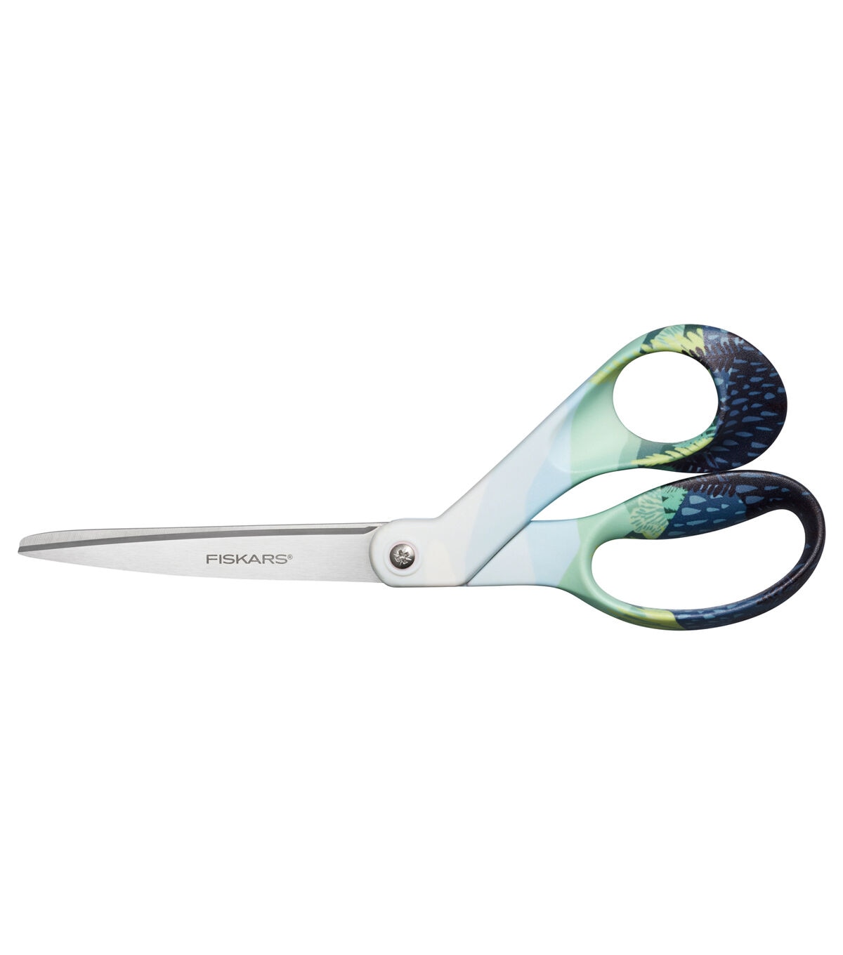 Exploration is a powerful source of inspiration, and Fiskars Explore collection pays tribute to exploring natural and digital worlds with striking style. Fiskars® Woodlands Scissors feature premium performance and ergonomic comfort unique to Fiskars scissors. Their high-grade stainless steel blades have a precision-ground edge that stays sharp and cuts all the way to the tip, ideal for working with a wide variety of crafting materials. The trend-forward patterned handle is sculpted to fit your hand for exceptional comfort and control. This scissors' bent handle design allows you to keep materials flat for precise cuts every time.