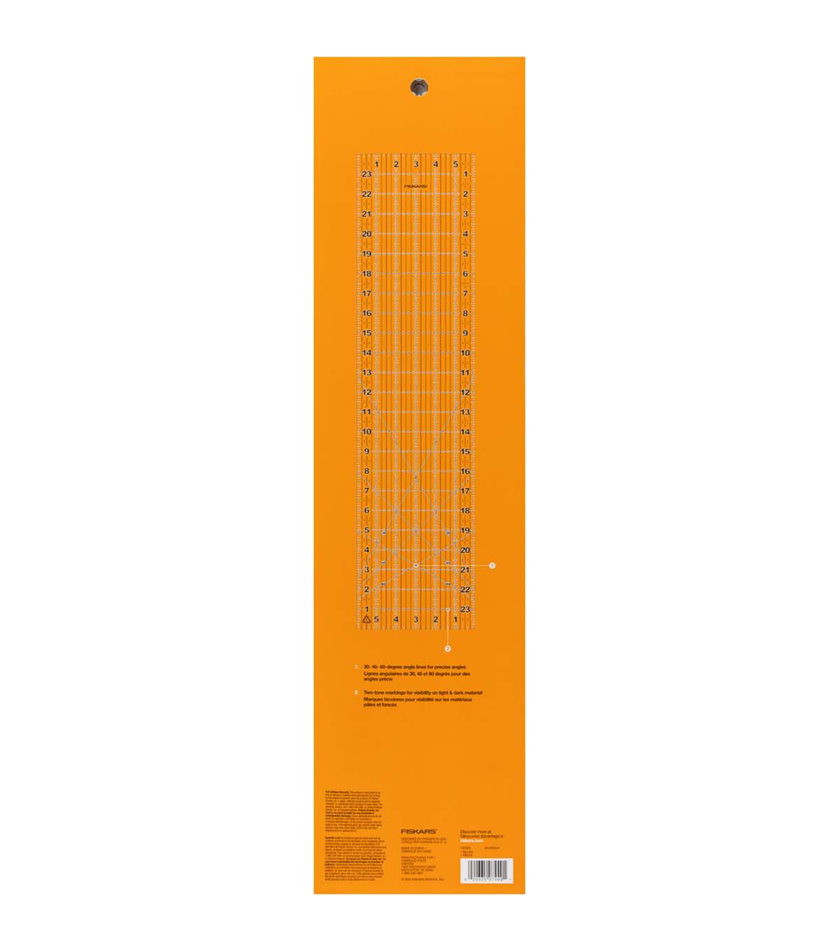 Fiskars large Coastal Colors Acrylic Ruler is perfectly sized for cutting strips or squares of fabric right from the bolt. It features clearly marked measurement lines and 30-, 45- and 60-degree line indicators. Made of durable acrylic.