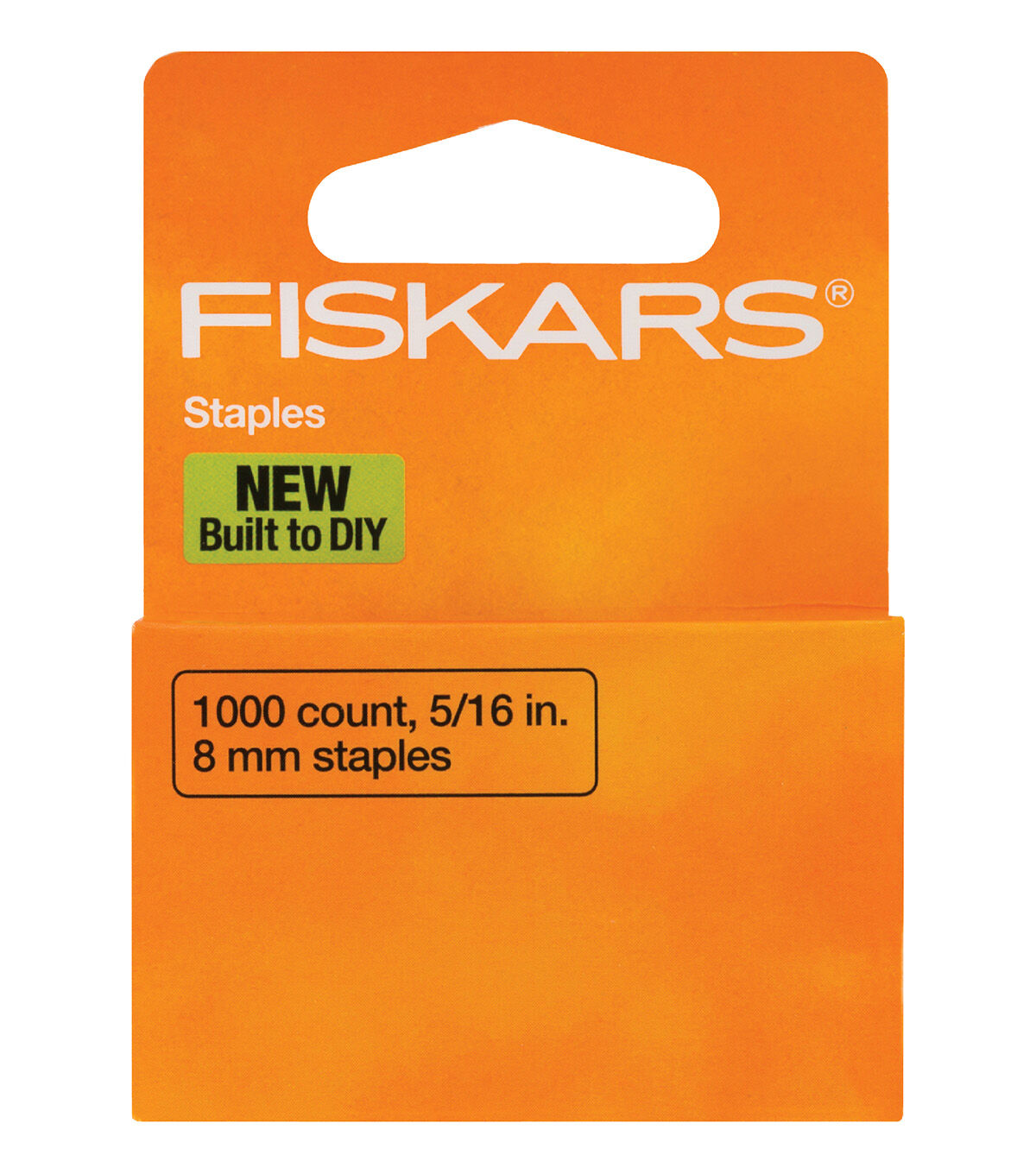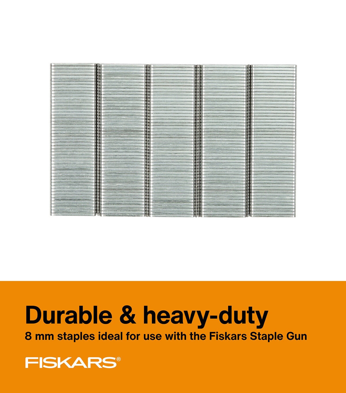 Durable, heavy-duty and 8 mm staples from the Fiskars DIY Staple Refills are easy to replace. They are ideal for use with the powerful yet easy-to-maneuver Fiskars Staple Gun. The pack contains 1000 staples.