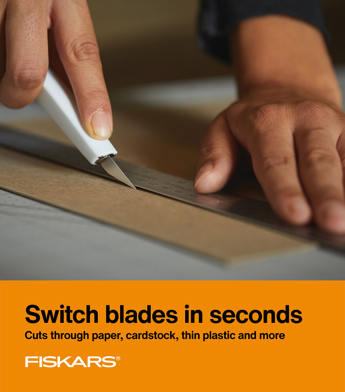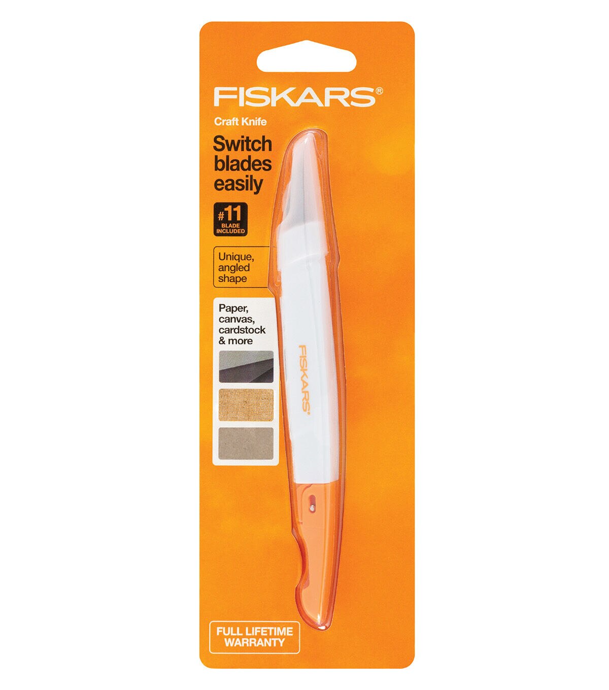 Stay comfortably in control during crafting projects big and small with the Fiskars Easy Change Detail Knife. A great choice for cutting paper, cardstock, thin plastic, photos, canvas and more, this tool features an easy blade change lock that allows you to switch blades in seconds, while the ergonomically sculpted handle features Softgrip touchpoints for added control and comfort. In addition, the no-roll design and blade cap improve safety. Compatible with most standard blades, this versatile knife ensures you can always use the blade that’s best for your project. The included safety cap protects blade during storage and the knife comes with one #11 blade.