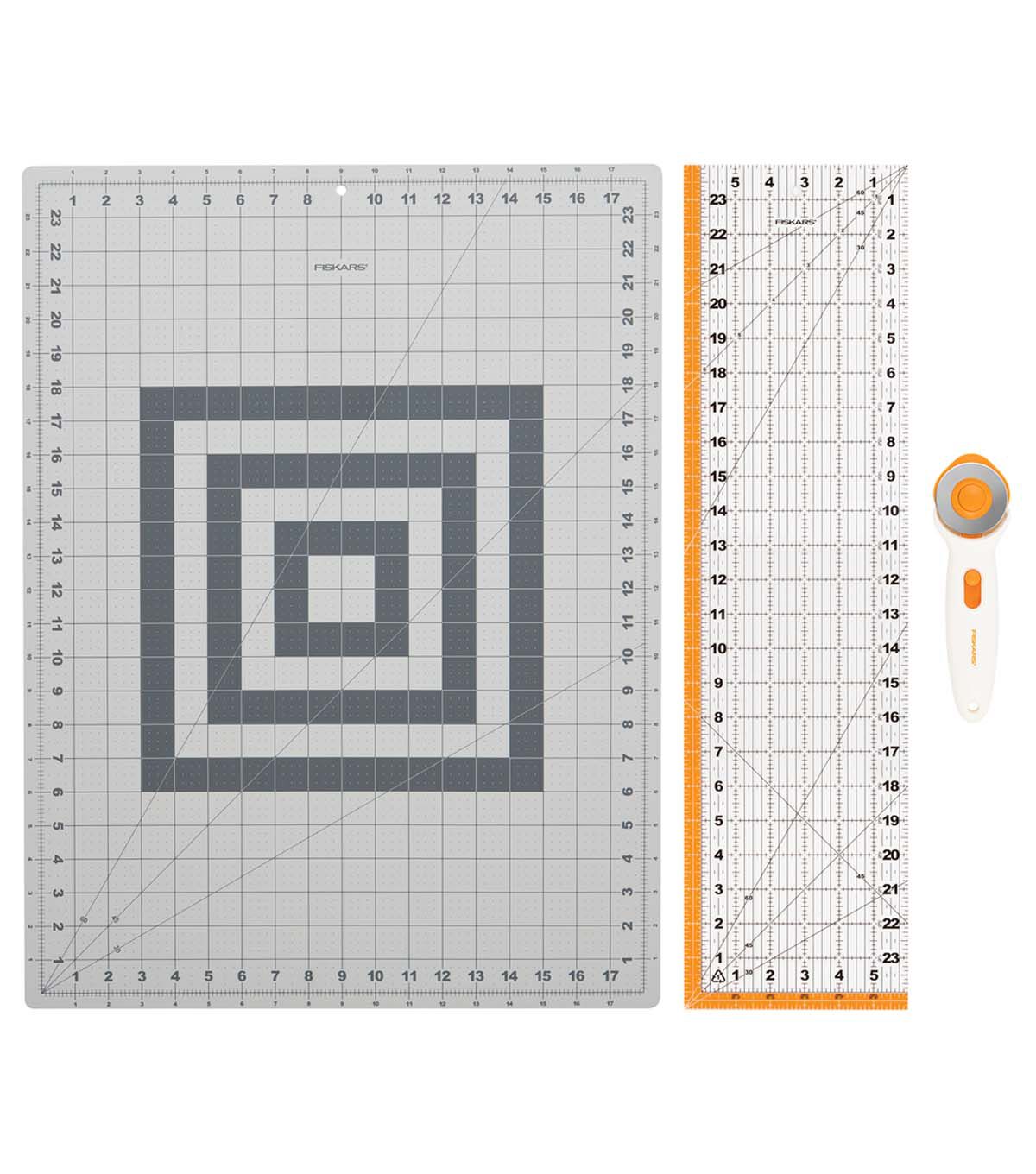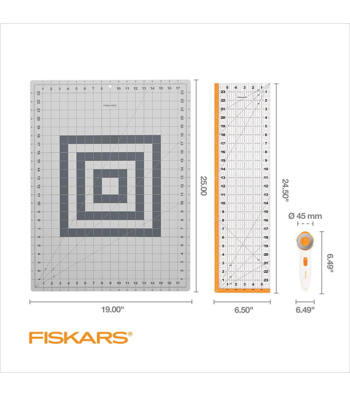 - Make easy, mistake-free cuts and measurements on fabric with Fiskars Fabric Cutting Set