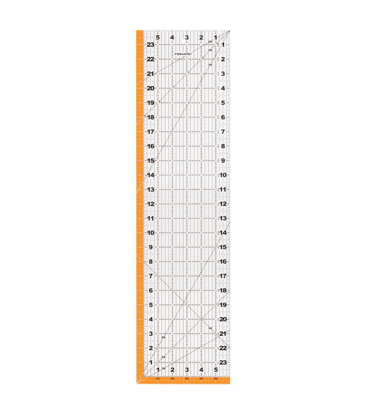 - 6 in. x 24 in. clear Acrylic Ruler lets you see where you’re cutting and includes highlighted seam allowances and a grid for easy shape cutting