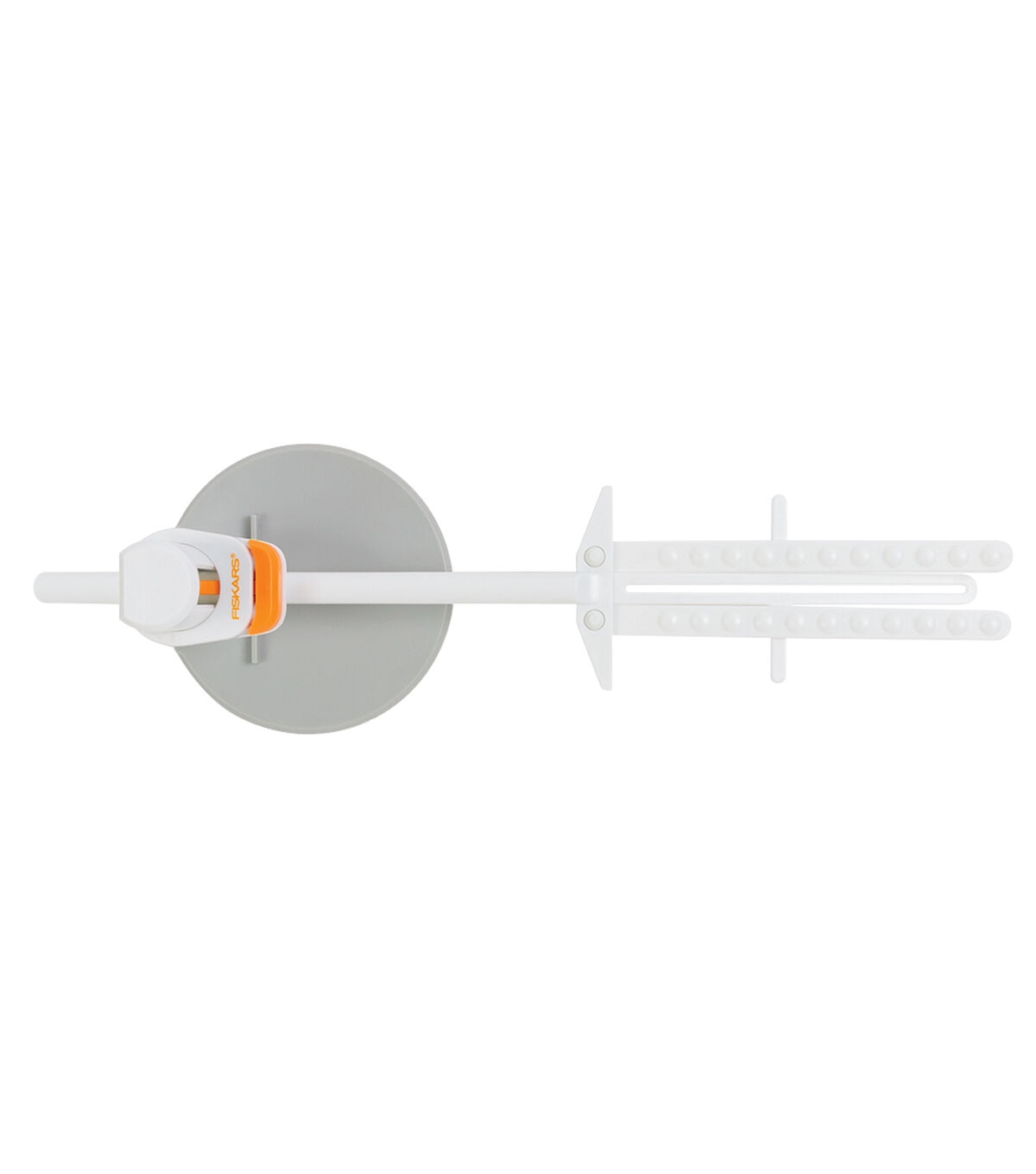 Fiskars Flat Vinyl Alignment Tool horizontally and vertically aligns vinyl for straight, accurate placement on flat surfaces. Ideal for consistent, repeat placement across multiple projects, this tool features an adjustment bar that adapts for decal placement at varying positions. The large base platform is designed to keep the tool stable on a flat work surface, while a crossbar serves as an additional straight reference point. Raised dots on the adjustable arms reduce surface area contact for easy vinyl removal. Suitable for vinyl up to 9 by 4 inches in size, this tool works on most transparent, translucent and opaque work surfaces, including canvas, wood, fabric, plastic, metal and more.