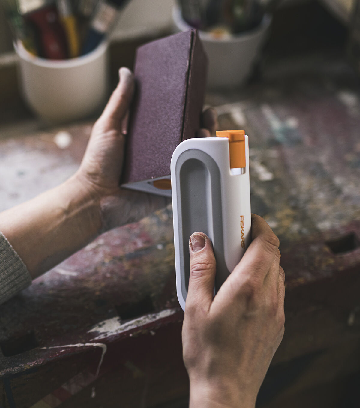 - Fiskars Large Sandpaper is cut for quick use with Fiskars 3-sided Large Sanding Block (item 132360)