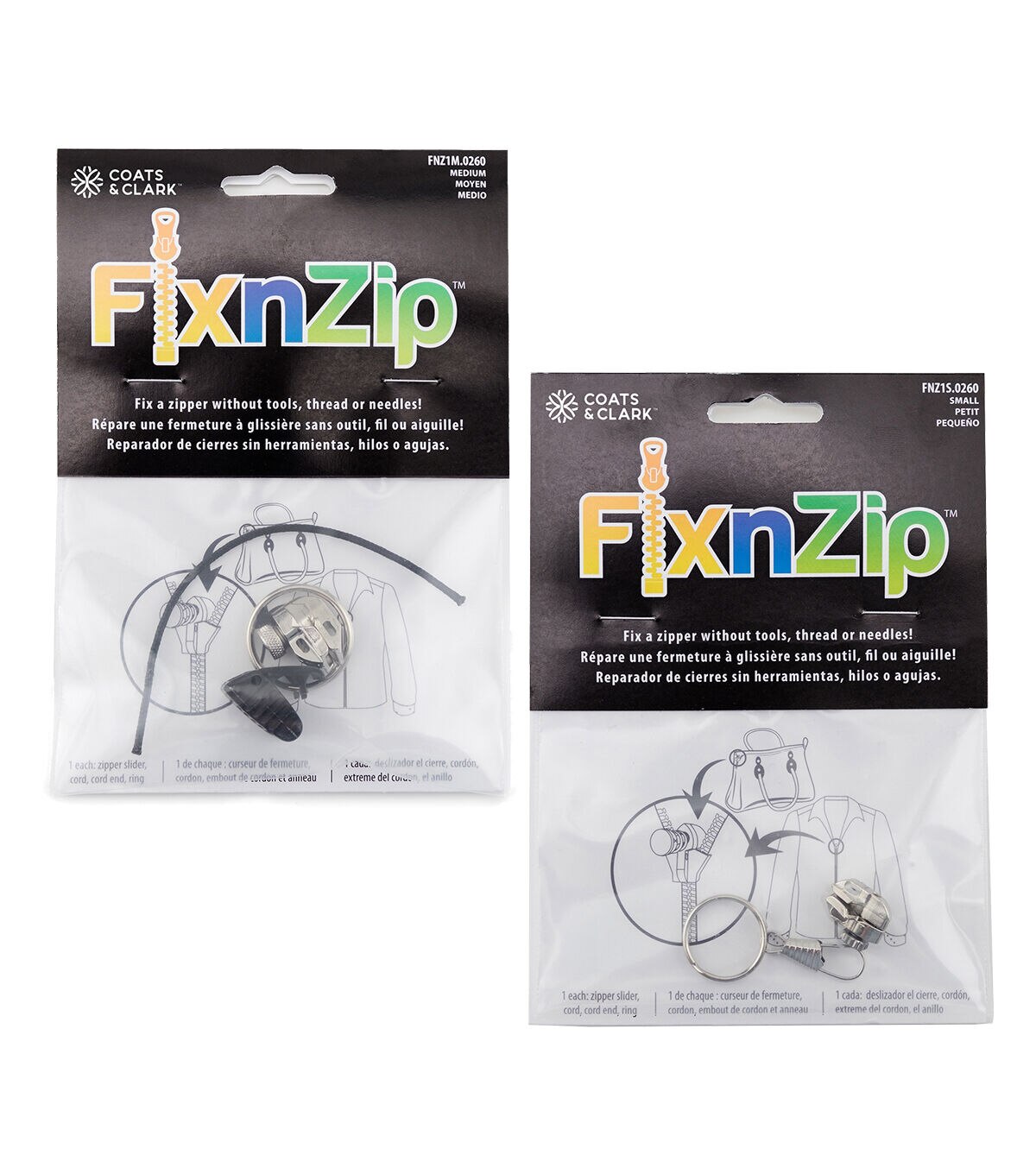 Repair your zippers without having to replace them! Package includes: assorted zippers and instruction booklet.