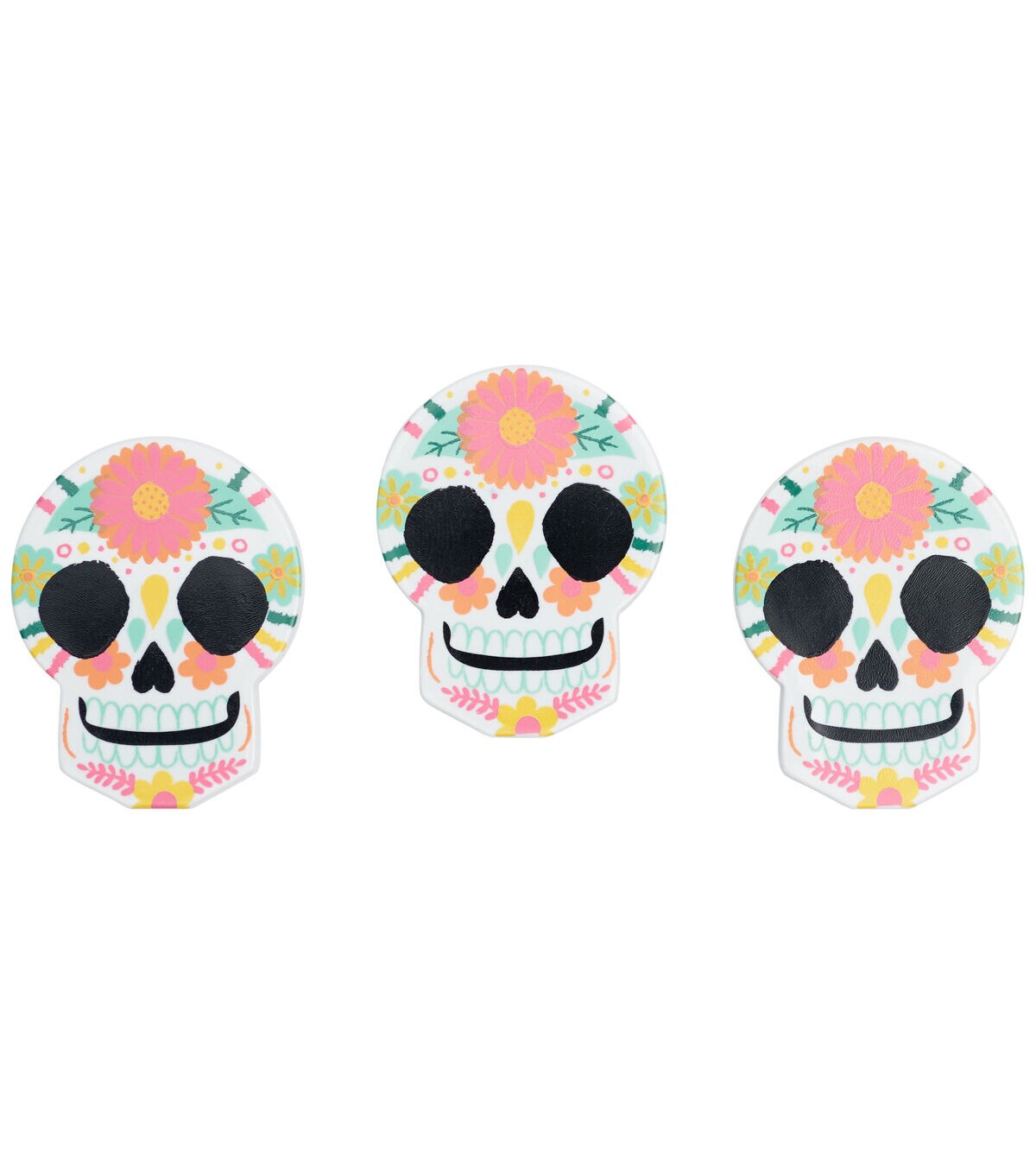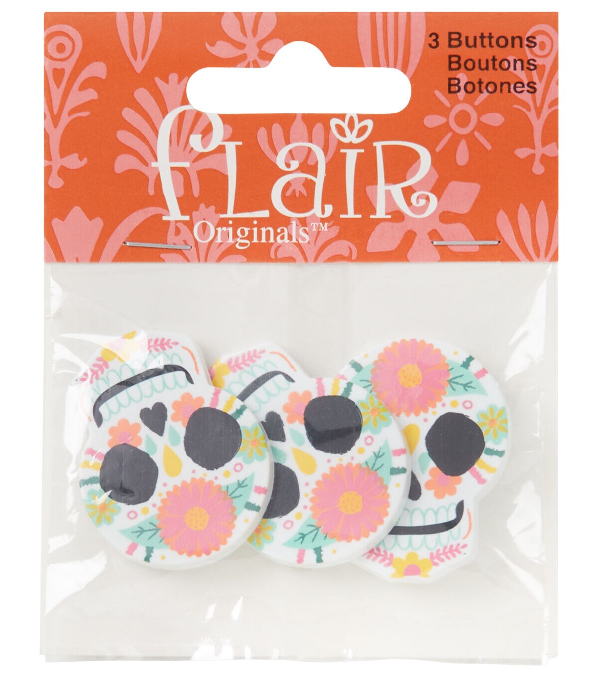 Create a beautiful embroidery work, decorate it with the Flair Originals Sugar Skull Shank Buttons - Multi and gift it to a sewing enthusiast in your life. They come in the shape of skulls sporting a bright floral design and are ideal for use on fabric crafting projects. You can also add them to home decor and papercrafting projects.