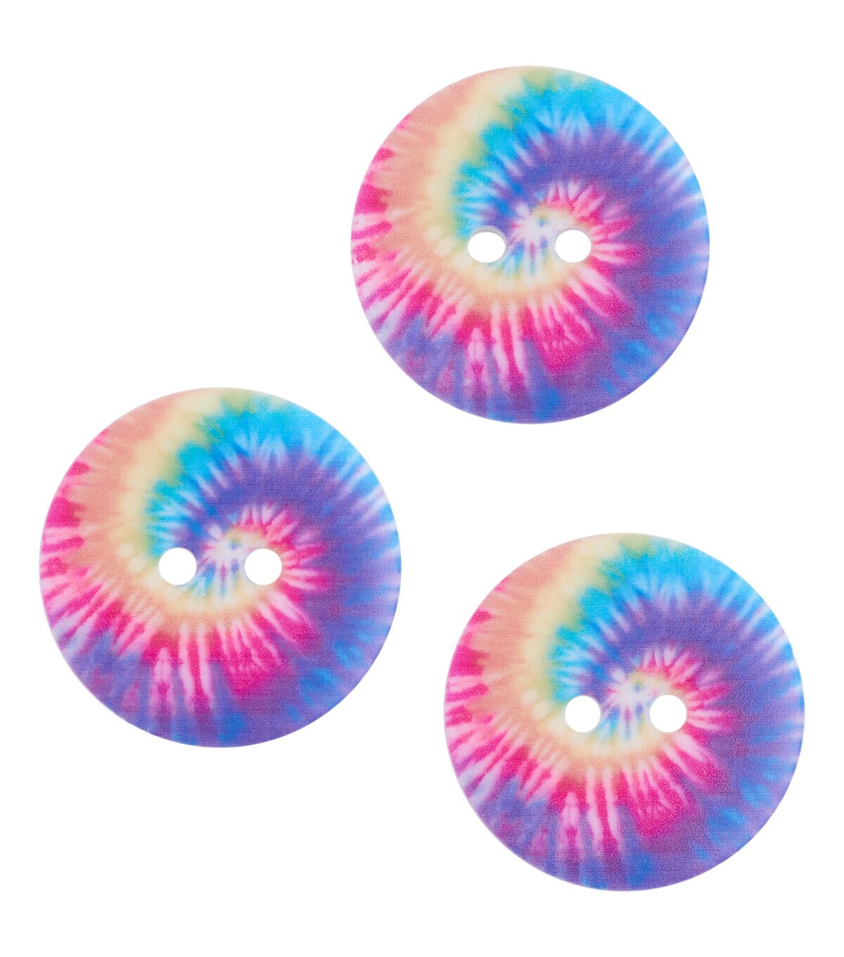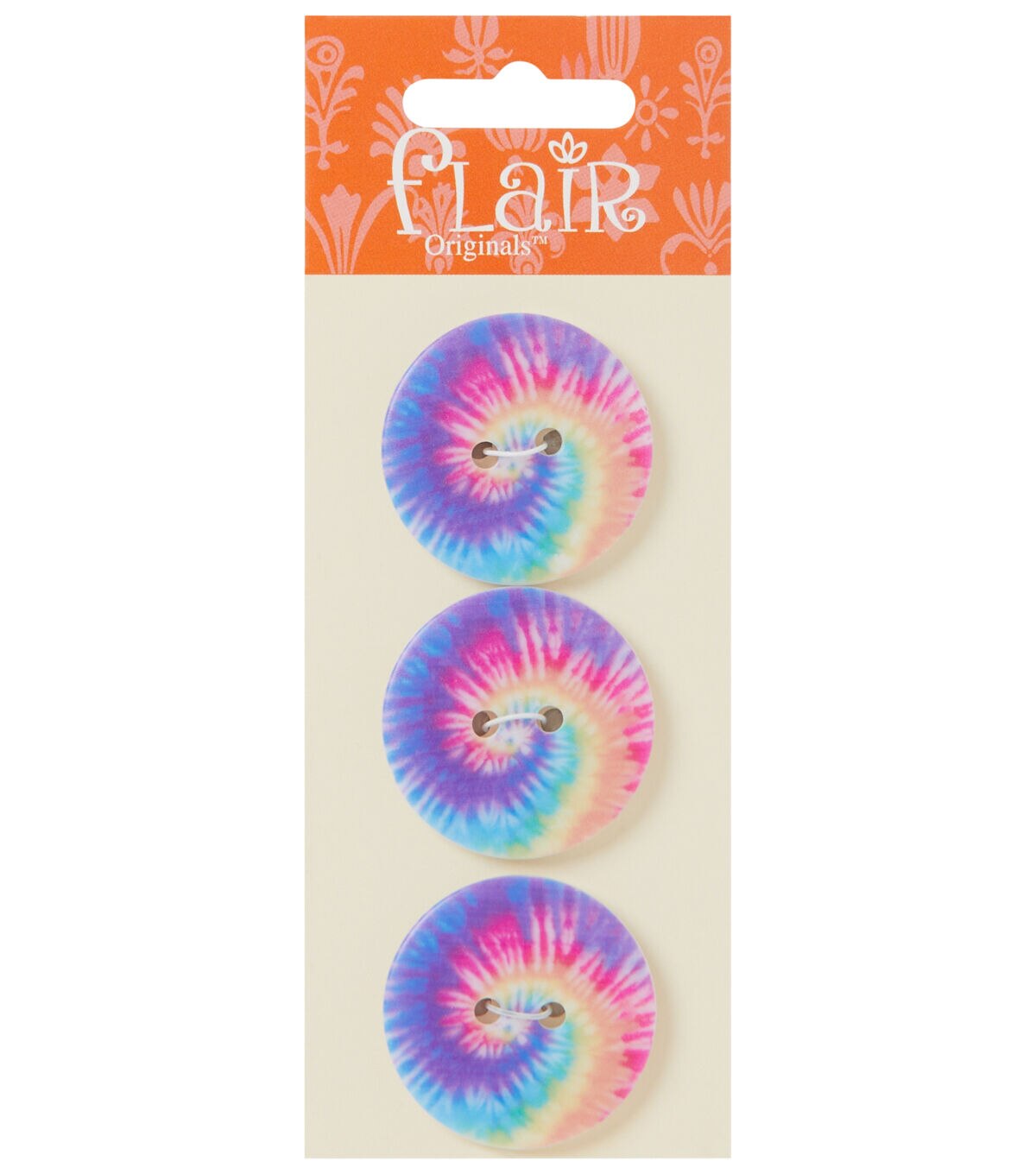 The Flair Originals 2 Hole Buttons - Multi Tie-dye Pattern are just what you need to prettify your sewing projects. They flaunt a tie-dye pattern in lovely complementing hues. Use them to embellish a DIY dress or top that you stitched for your little girl. You can also team them with other colorful buttons and add them to a handmade wallet for a unique look.