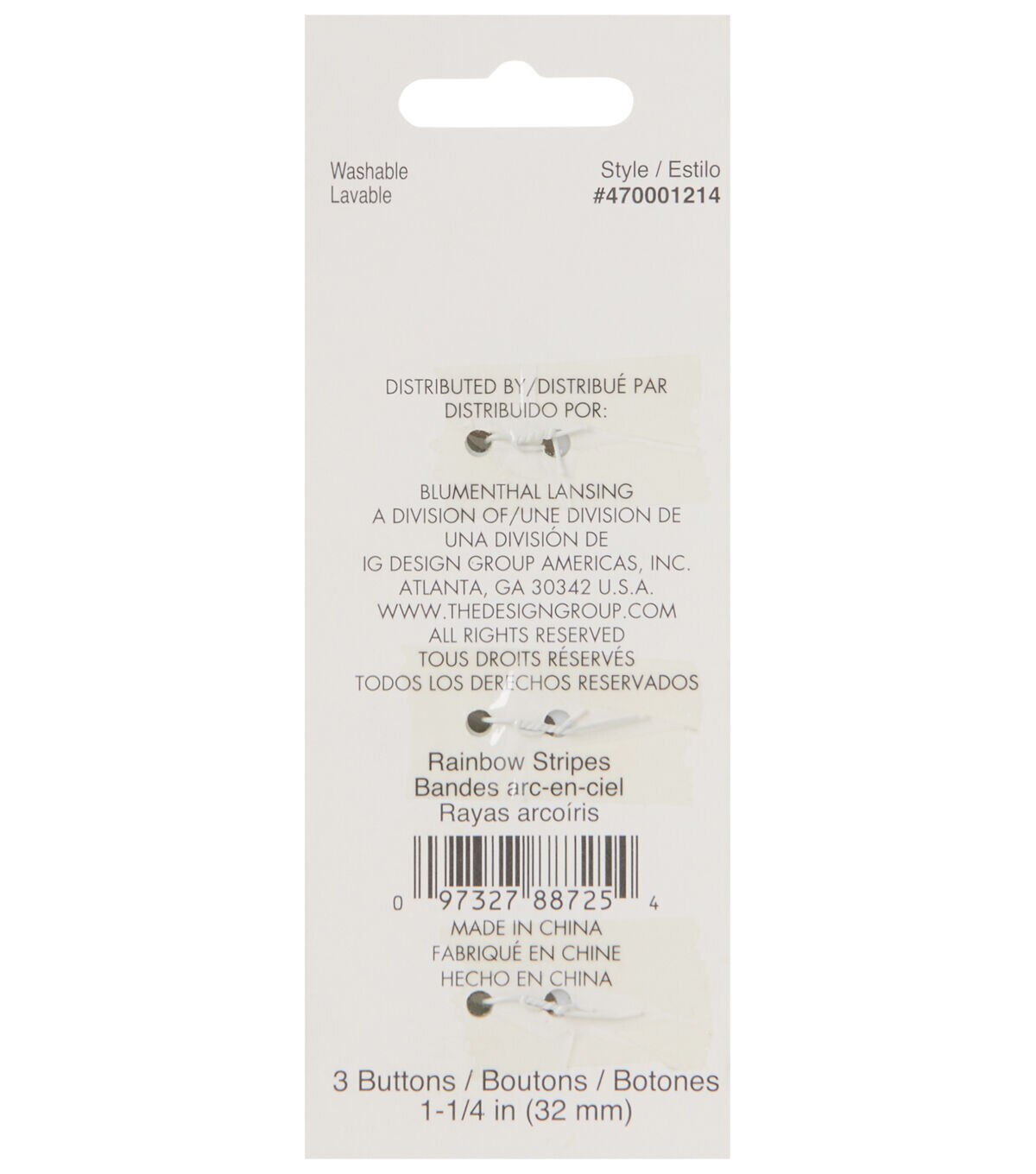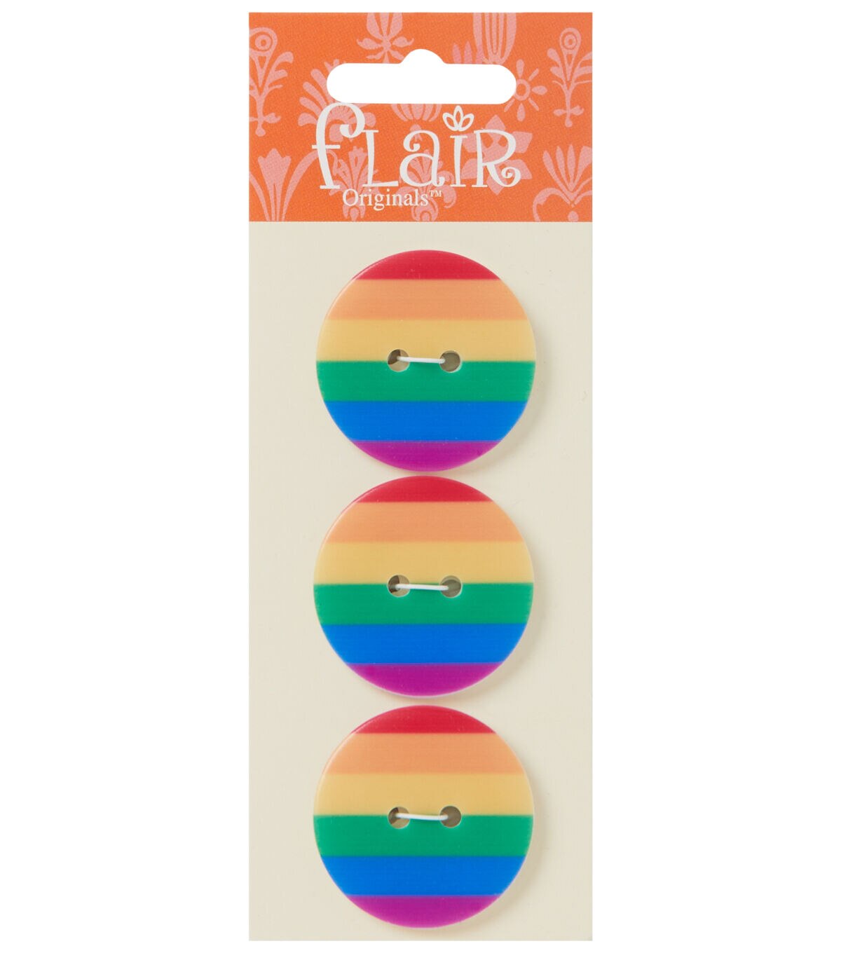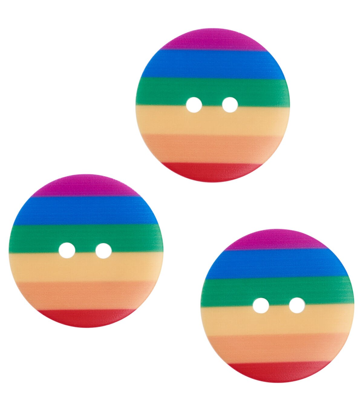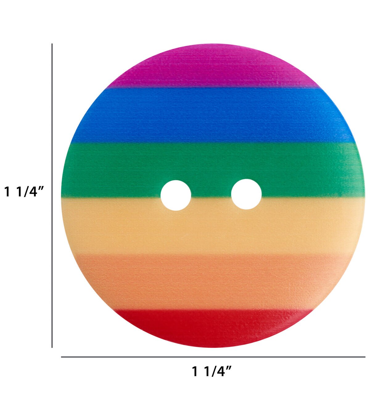 Add the Flair Originals 2 Hole Buttons - Rainbow Stripes to your sewing supplies. Sporting a striped pattern in vibrant rainbow shades, these buttons will make your creations stand out. You can add them to your costume for the upcoming Pride parade or handmade fabric bags and wallets. Mix and match them with other buttons to accentuate DIY craft projects.