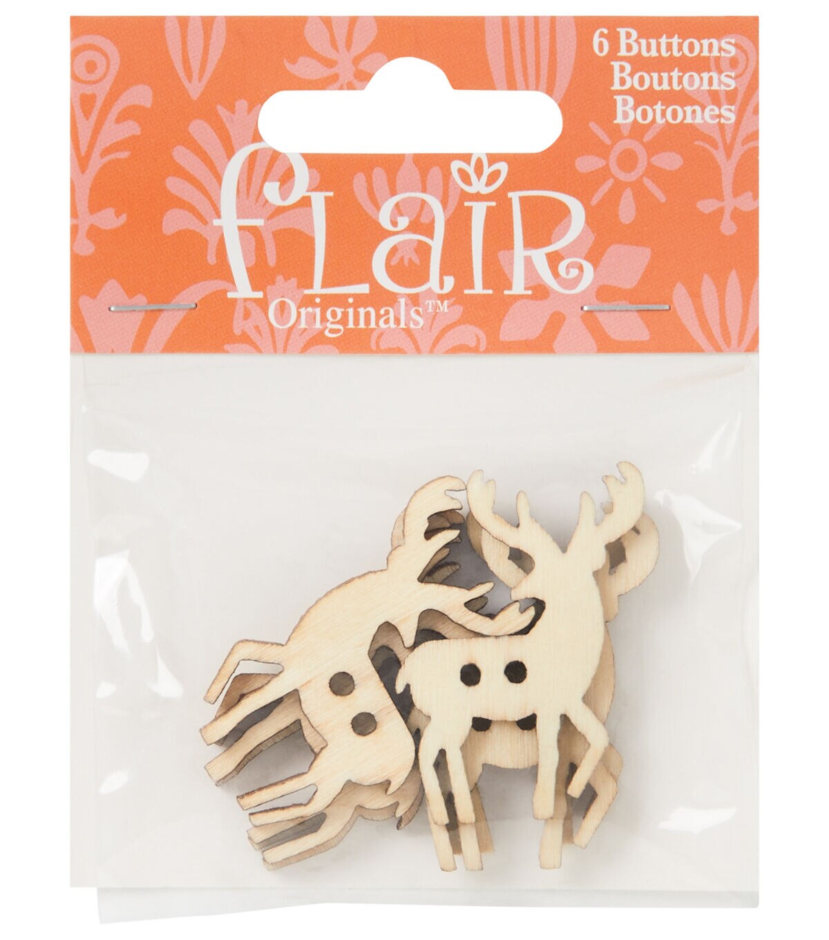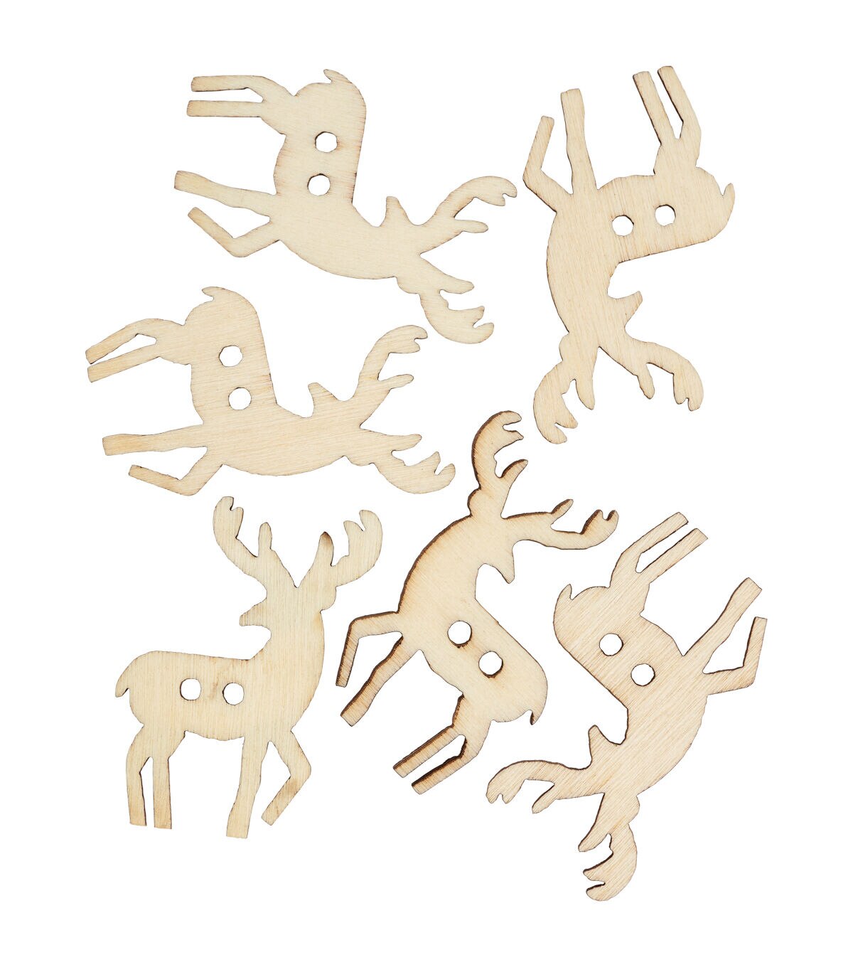 The Flair Originals Wooden Reindeer 2 Hole Buttons - Natural will perfectly complement a DIY dress or top for your little one. They are crafted from wood and resemble reindeer. You can also add these buttons to your handmade fabric bag, or use them to decorate papercrafting projects. This pack contains six buttons.