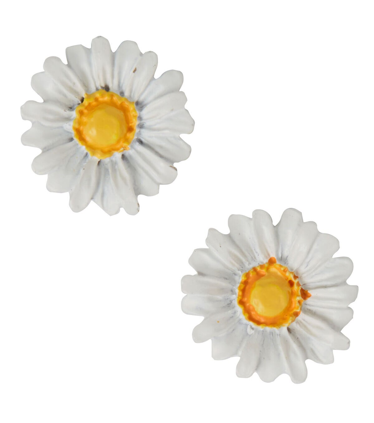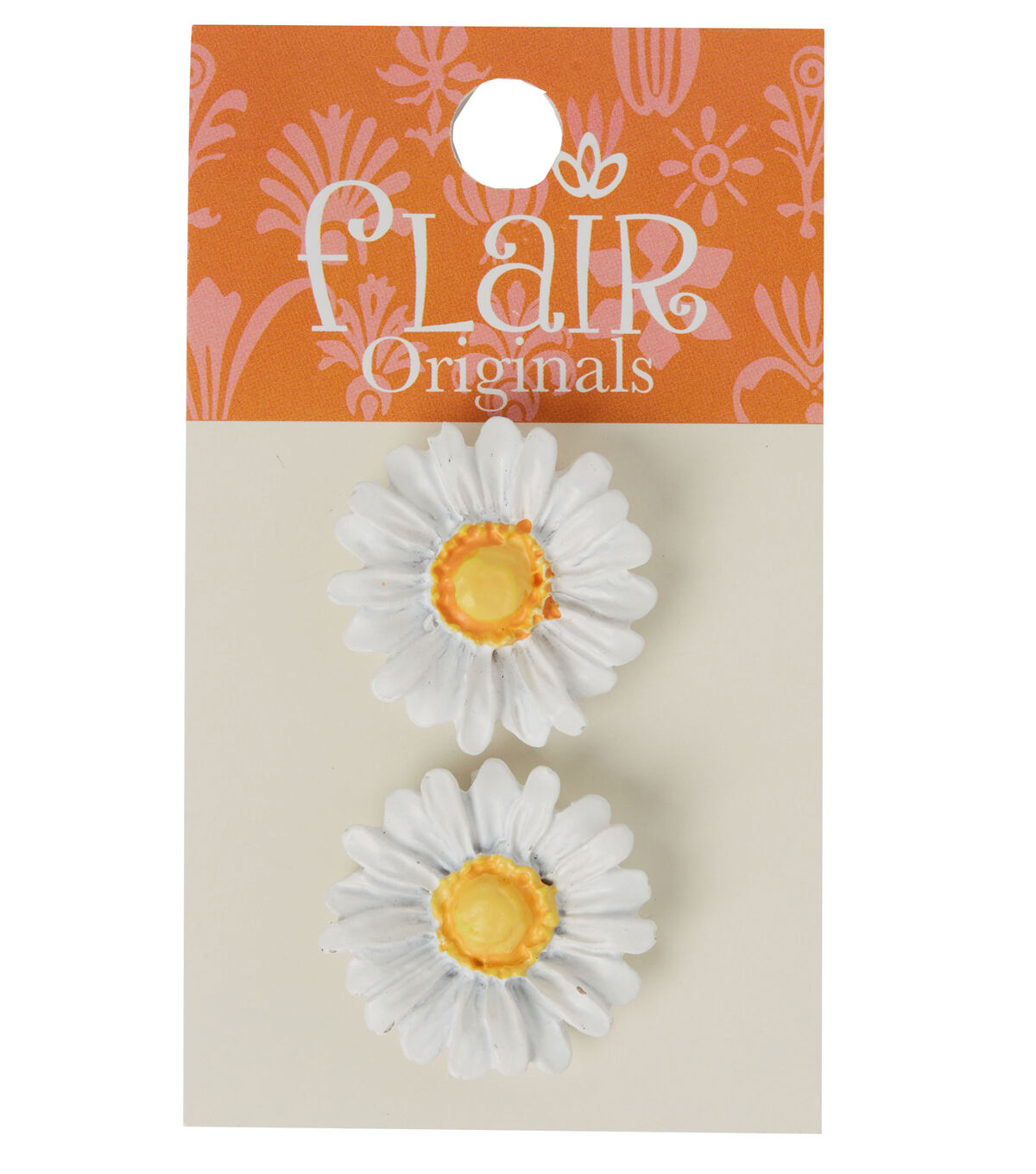 Lend a lovely summery vibe to DIY craft and sewing creations with the Flair Originals Hand-painted Daisy Shank Buttons - White. These shank buttons are shaped like daisies and sport yellow and white shades. You can also use them to decorate scarves, handmade tote bags and more.