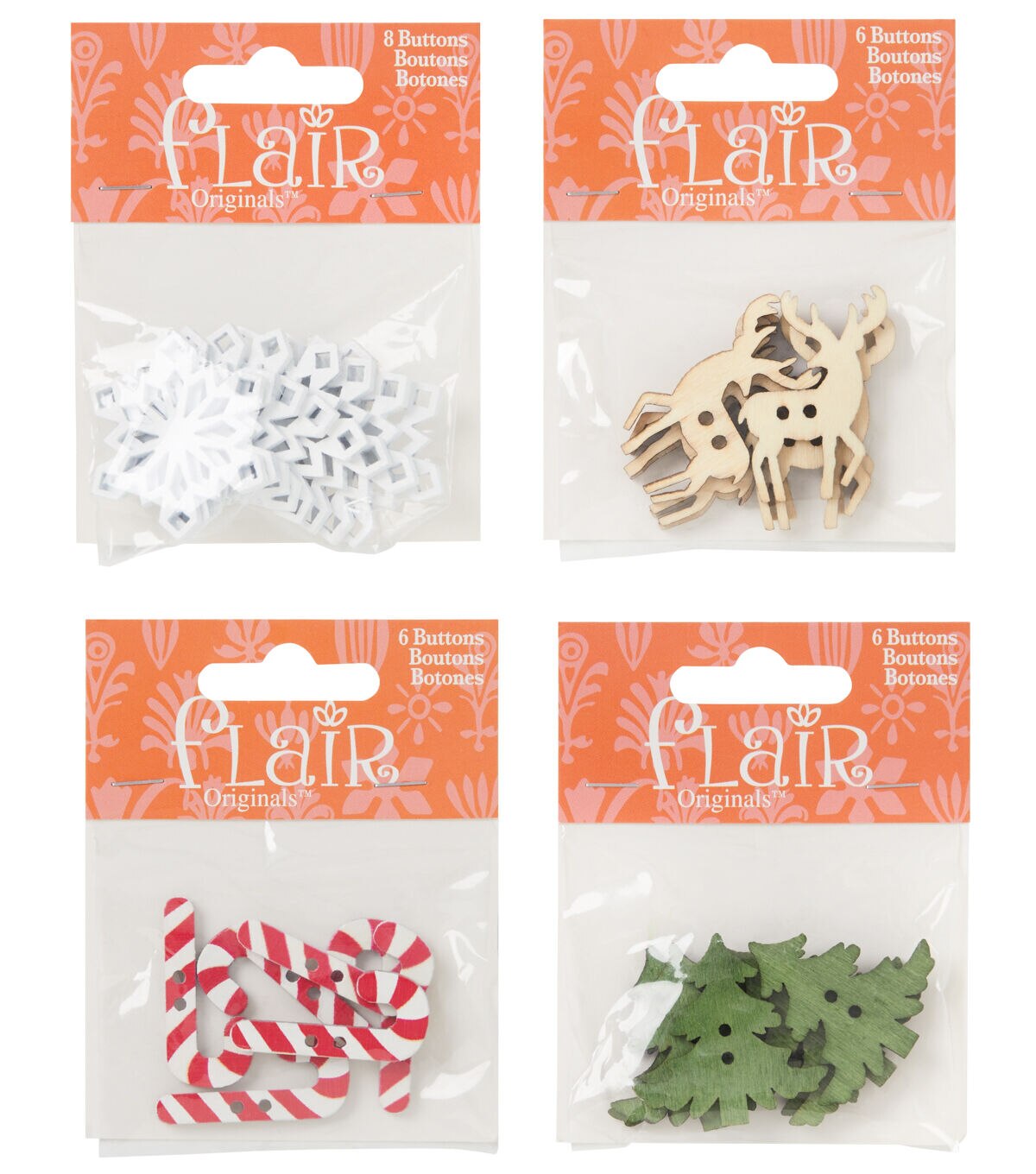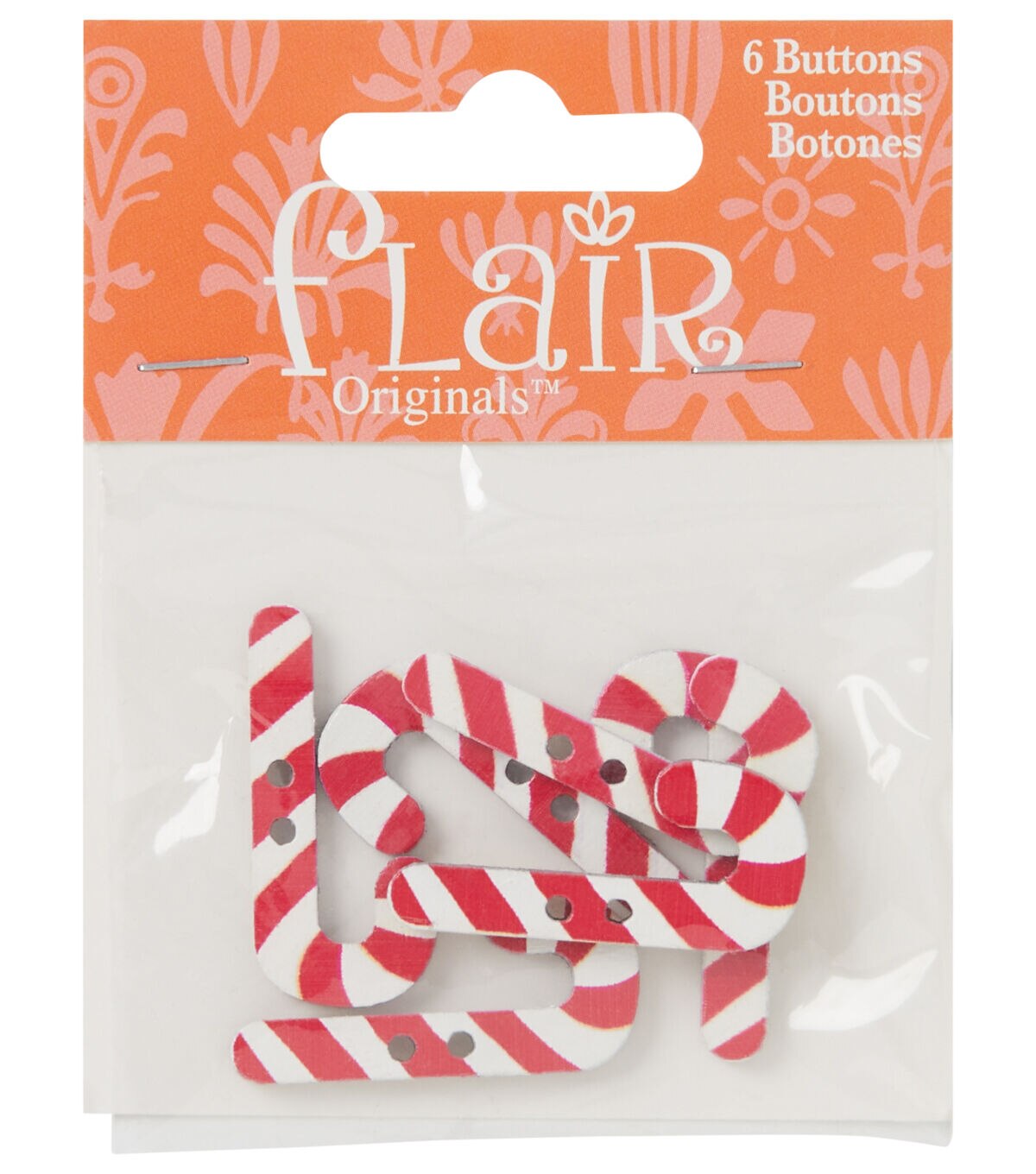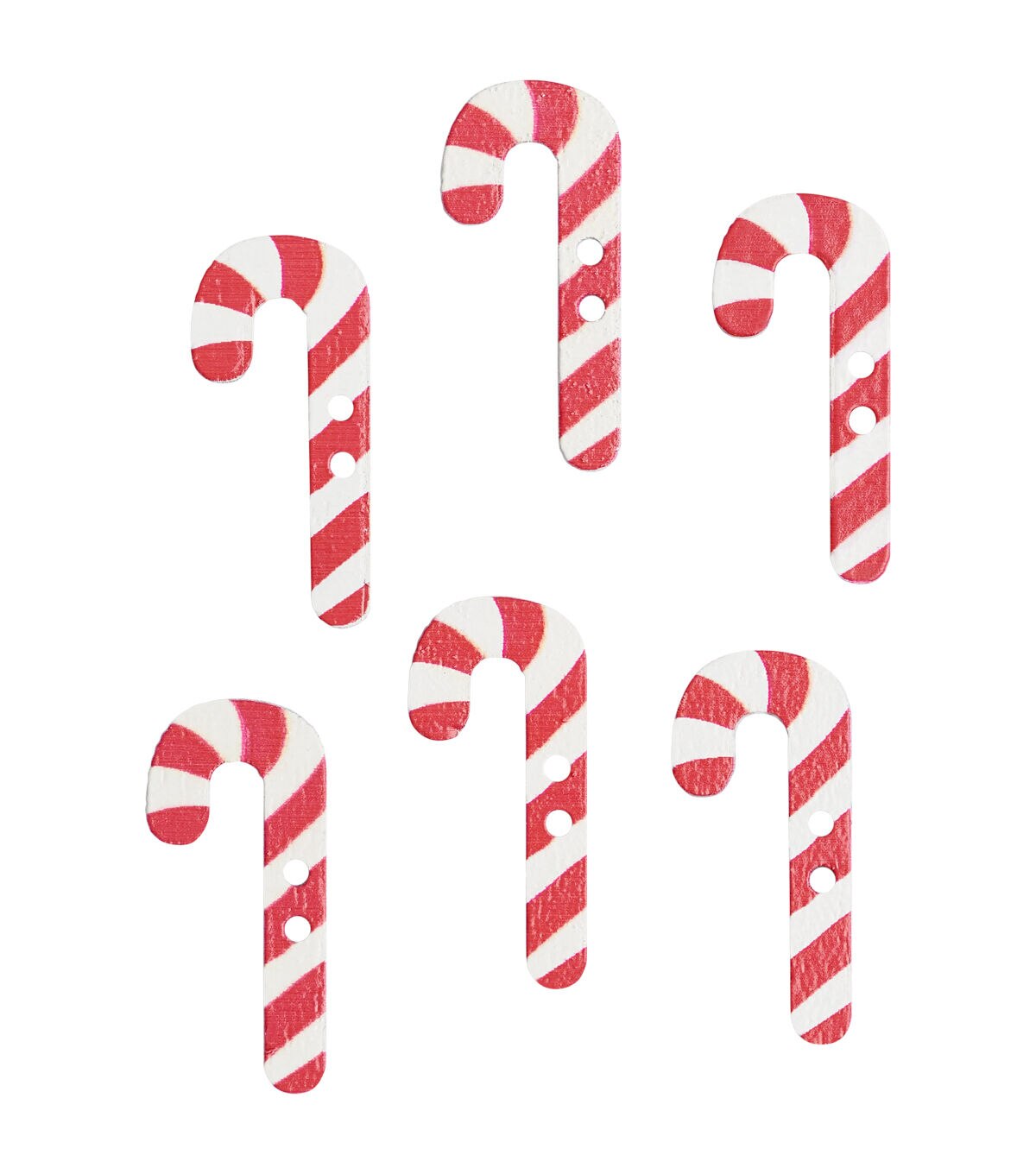 The Flair Originals Wooden Candy Cane 2 Hole Buttons - White & Red will make your handmade creations stand out. These buttons resemble candy canes and will look lovely when stitched onto dresses, tops, shirts and more designed for kids. You can also use them to enhance Christmas-themed hair accessories for your little girl.