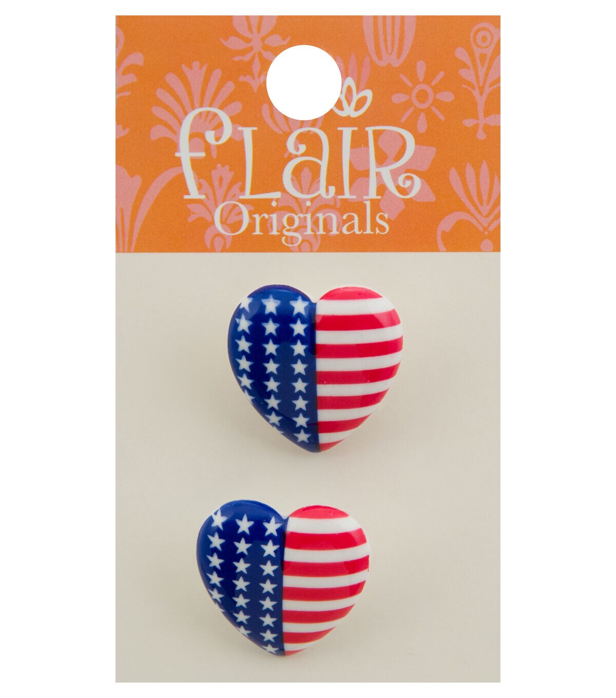 The Flair Originals Heart Buttons American Flag will make a great addition to your apparel projects that are designed for the Fourth of July. Shaped like a heart and printed with the flag of America, these colorful buttons are perfect to show your love for the country. You can also add them to your handmade tote bags.