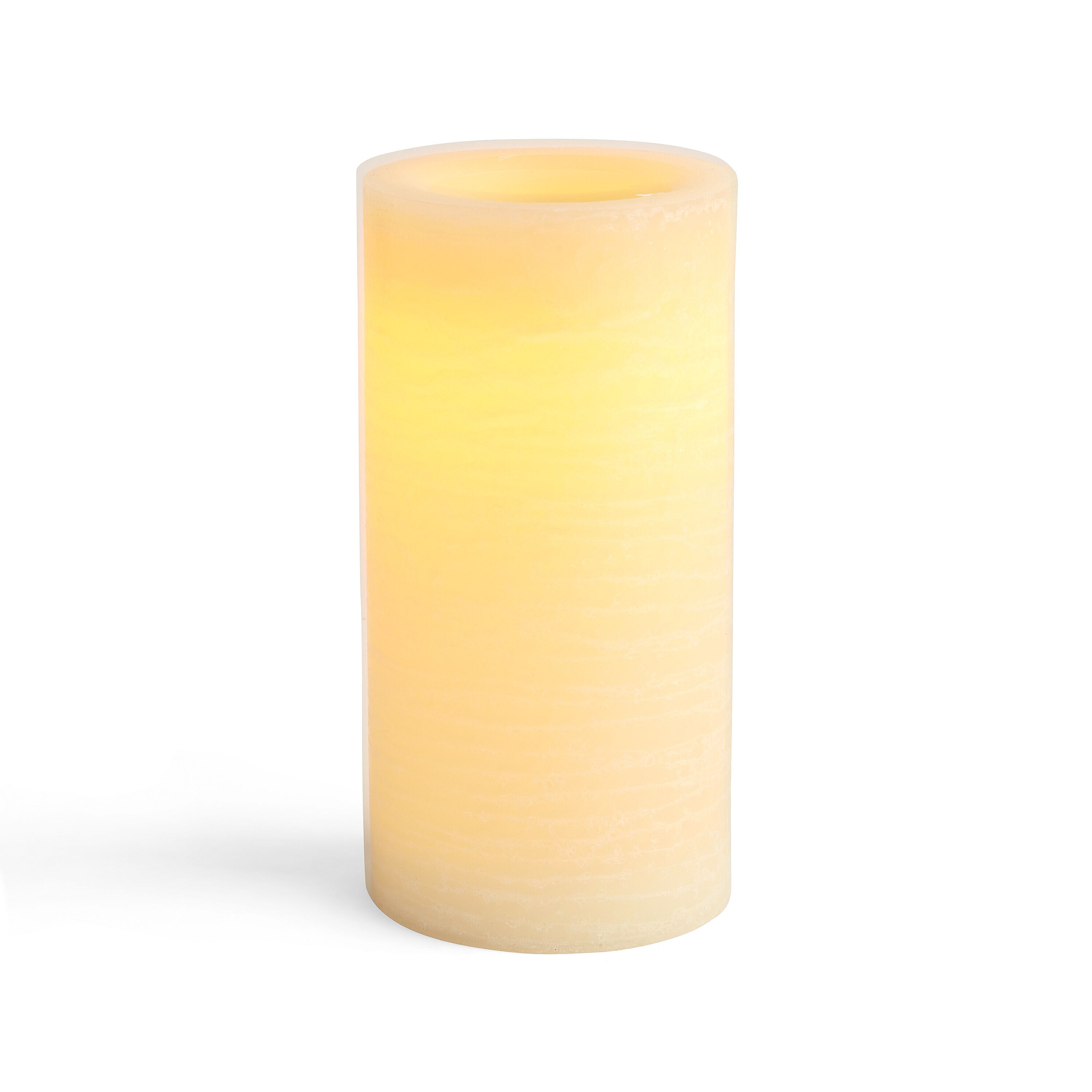 With a wax finish and a realistic flicker, these battery operated pillars offer a true candle experience in a safe, flame free format. A 5 hour timer lets you customize your lighting experience. Vanilla scented. Cream finish
