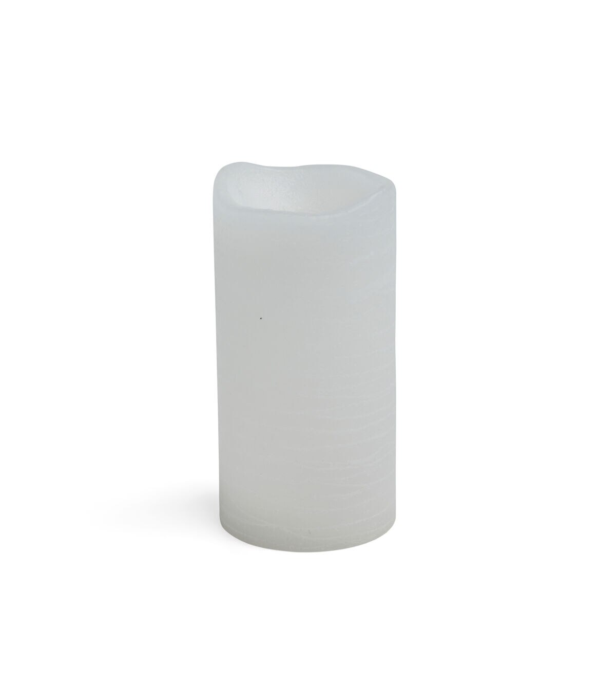 The relaxing scent of vanilla and the welcoming glow of an amber LED combine in this flameless pillar candle. A rustic design adds texture and a melted top gives a true candle experience. Features an on and off switch and a 5 hour timer that lets you customize your illumination. Runs on 2 AA batteries sold separately. White finish.