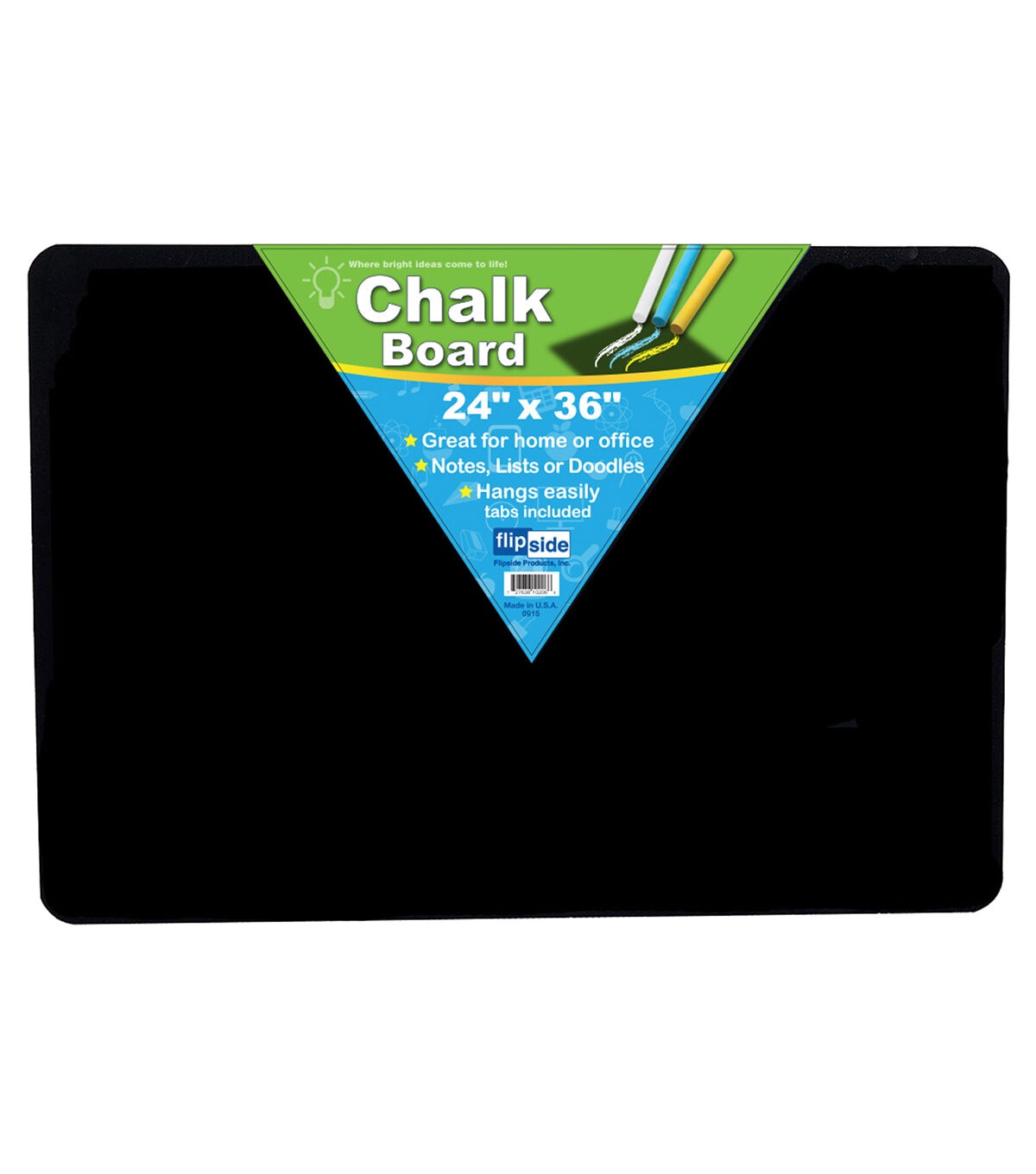 Save paper by using a time-tested and reusable writing surface like the Flipside Chalkboards-Black. The black chalkboards are the perfect size for school, office, and home message centers. They also work well for handwriting practice, working equations, brainstorming and more. With rounded corners and smooth edges, they provide safety and comfort. Use them with white, colored chalk and felt erasers. The chalkboards have a hardboard backing that is warp and chip-resistant, and come with adhesive squares for mounting.