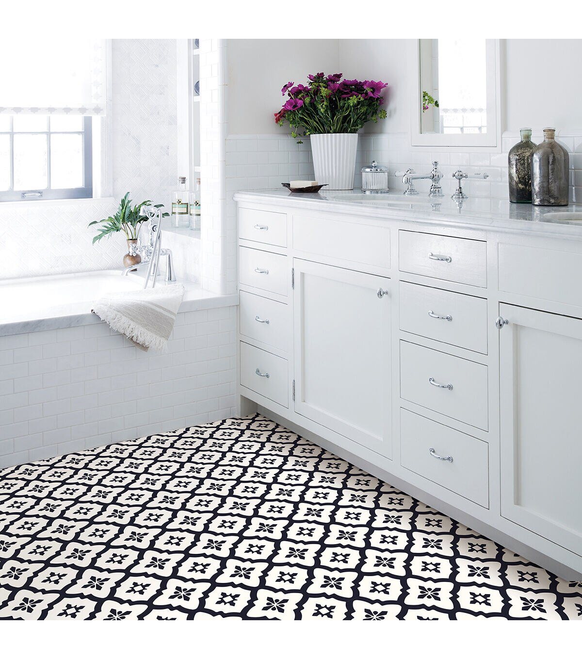 Transform your floors with the timeless elegance of black and white geometric design. Floorpops Comet Peel & Stick Floor Tiles, brought to you by the trusted brand Floorpops, are the perfect choice for anyone looking to upgrade their home decor. These tiles are made from virgin vinyl material with a textured low lustre finish and permanent adhesive, ensuring durability and longevity. Each package contains 10 tiles that measure 12 x 12 inches and are .06-in in depth, providing ample coverage for any room in your home.