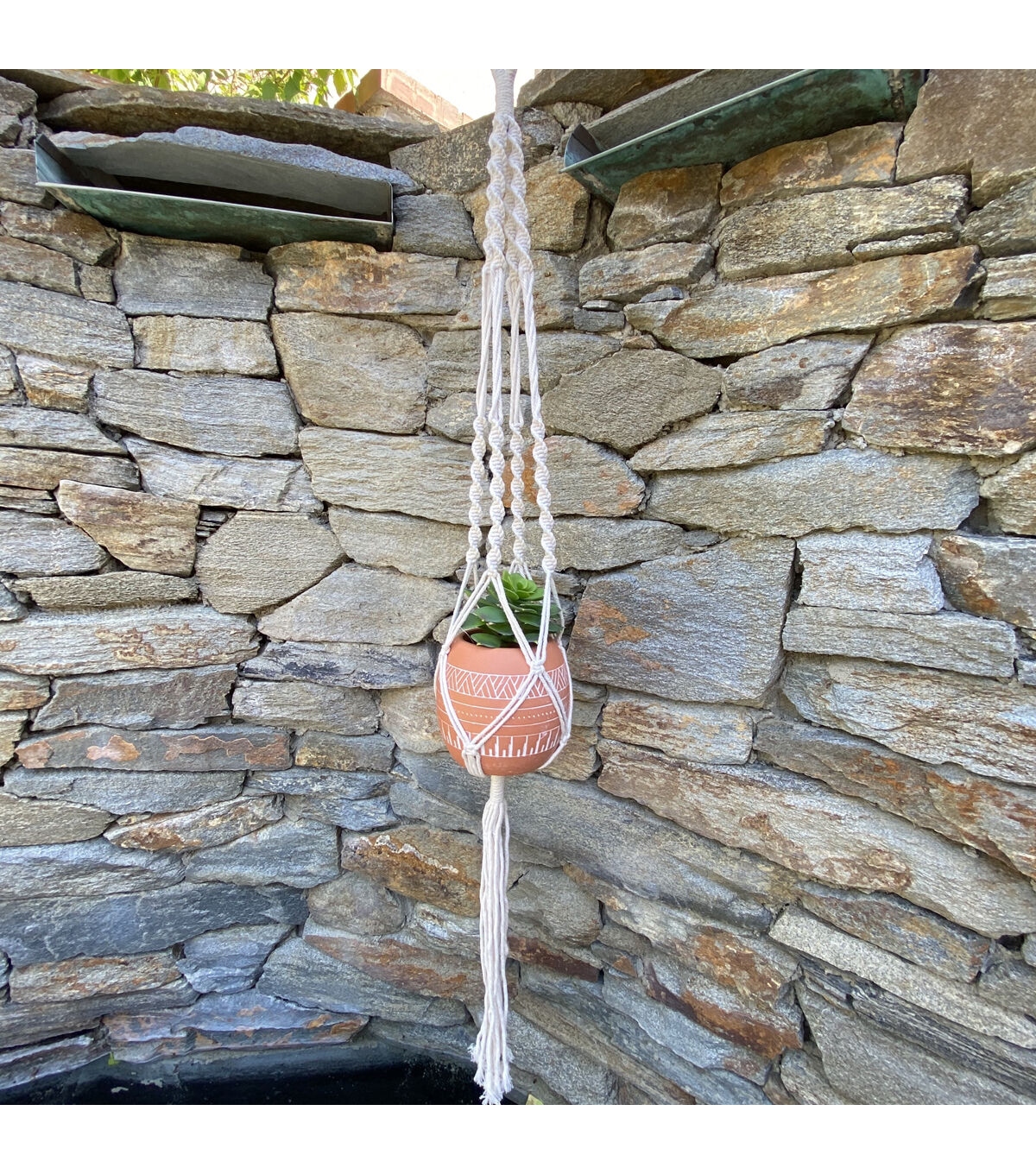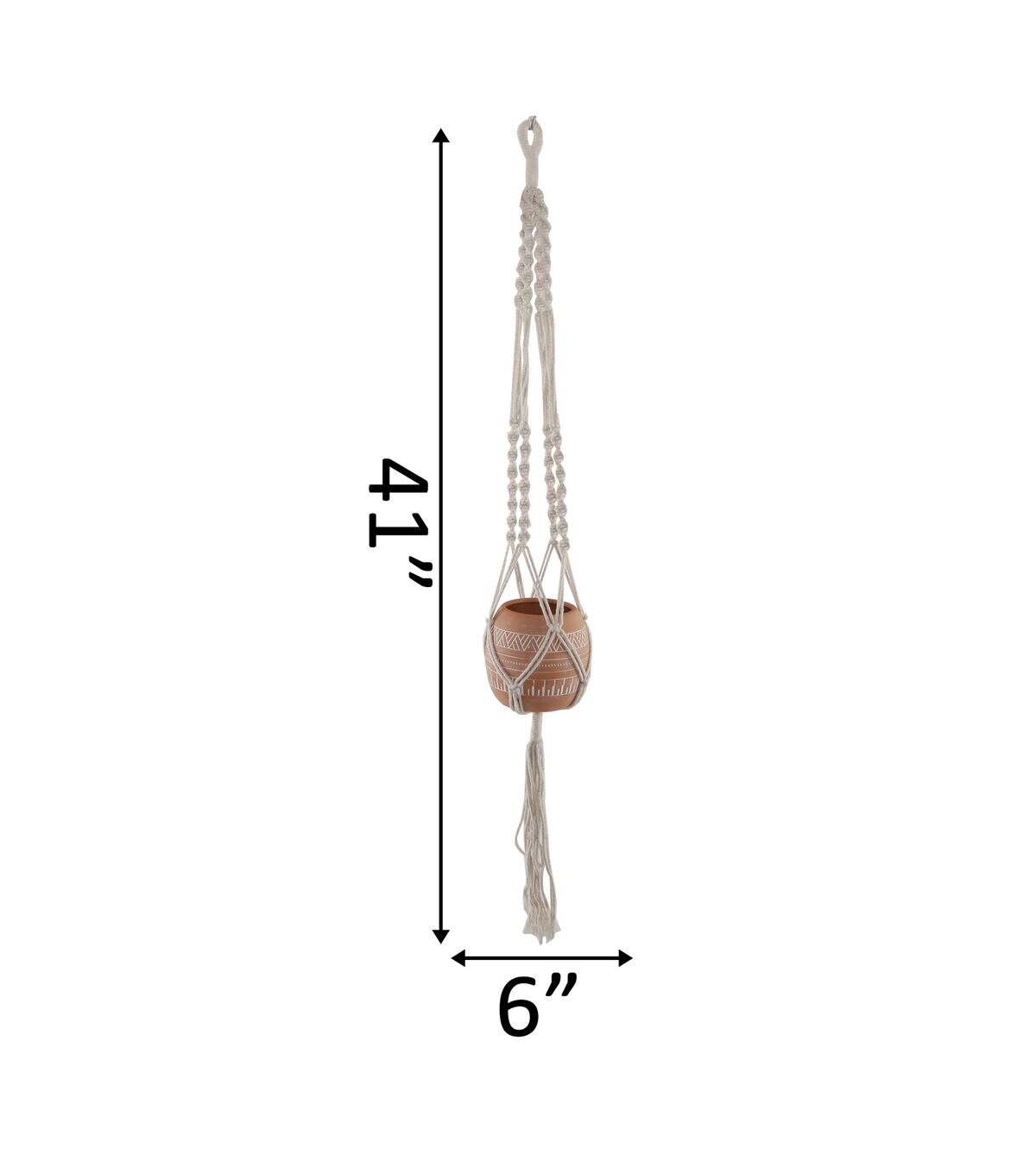 Hang with me! Hang this 41” Hanging Macrame Ceramic Aztec Pot anywhere in your home to create a floating oasis. Handcrafted by Artisans, our macrame hanger with a ceramic pot will help elevate your plant game in modern style. Made of ceramic and rope and painted orange, this 41”x6”x5” hanger with a pot will add a bit of chic nature to your living space. Buy a few at a time, so you can start your own floating garden indoors! Handcrafted by Artisans Measurement: 41”x6”x5” Color: Orange Material: Ceramic, Rope **No Drainage Hole. Indoor Use Only!**