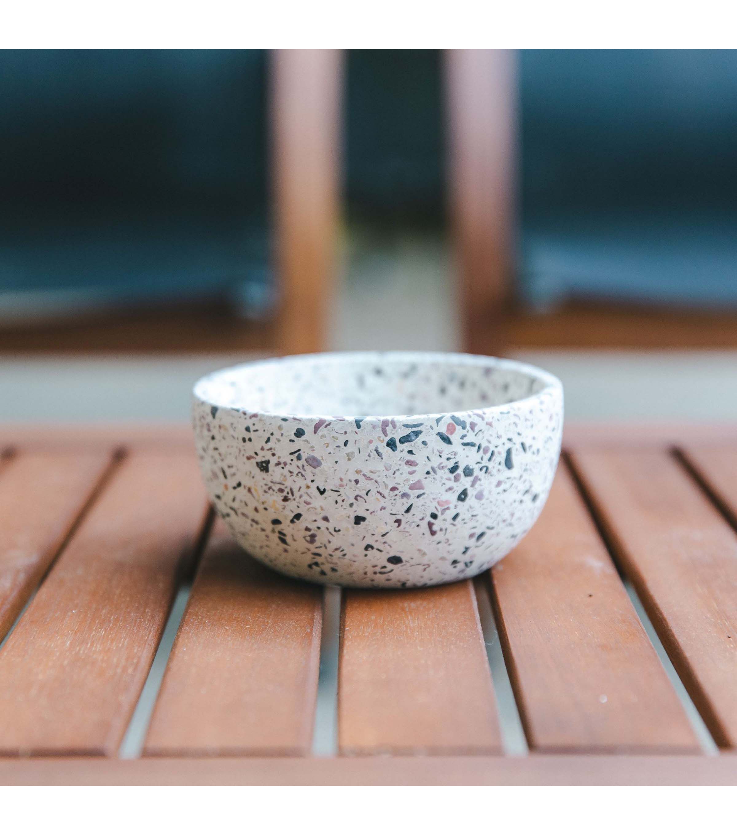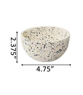 Decorate your space with this 4.75” Terrazzo Bowl. Handcrafted by Artisans, this 4.75”x4.75”x2.375” terrazzo bowl will help you upgrade your decor in style. Made of cement and painted natural, this planter will add a bit of chic nature to your living space. This unique item is perfect for any table or display and is the perfect addition to any room! Handcrafted by Artisans Measurement: 4.75”x4.75”x2.375” Color: Natural Materials: Cement **No Drainage Hole. Indoor Use Only!**.